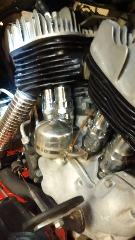 In 2011 a crack developed between the exhaust valve and bore of the front cylinder. Repairs were done by American Motorcycle Fabrication. New original bore cylinders were ported and flowed, then fitted with new pistons and rings.