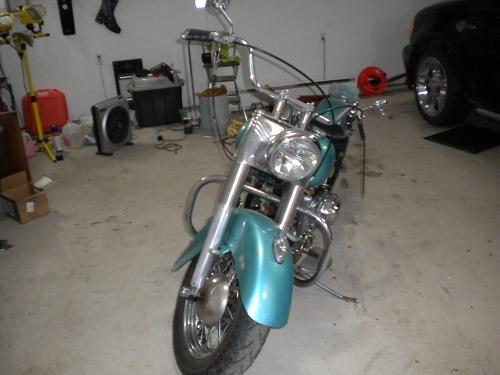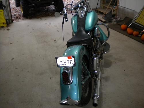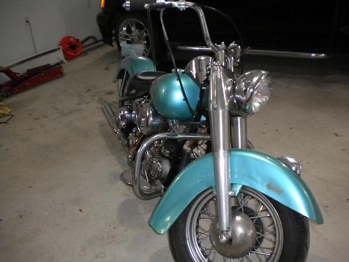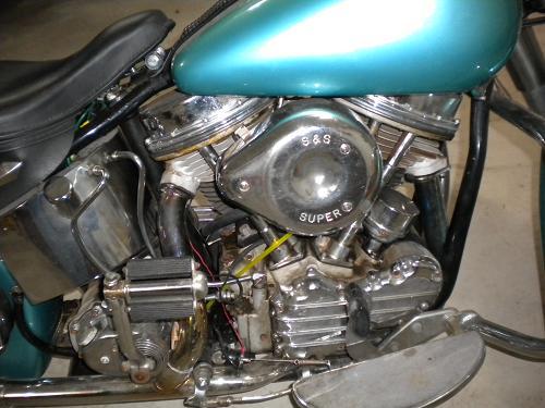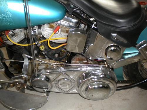This bike is a early 50s bike with a 1959 Panhead motor. Because the VIN# is on the moter, the bike is titled as a 1959. The primary drive has been converter to belt drive. The electrical system has been converted to 12 volt system. It has 020 pistons, Manley valves, Andrews cams, Andrews gears& shafts in trany, new trany cases, S&S Super E carb, S&S oil pump and Cycle Electrics generator/reg 12 volt. It also has new tires, rebuilt front fork and new exhaust system. The exhaust ports on the heads are converted to shovelhead ports.