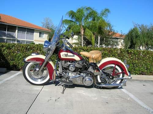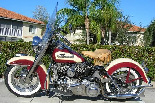 1955 Harley Davidson FLH-Panhead Hydroglide. Beautiful two-tone chile pepper red & tan which was optional in 1955, standard models were offered standard single colors & schemes. The 1955 FLH features a special motor with higher compression pistons & polished & flowed intake tracts that increased horsepower by about %10 than previous FLs, the higher compression FLH was dubbed Super Sport. Runs great & loud pipes. This bike is a rare find. Special features: 122 c engine, original 6 volt system, lots of chrome & original parts & clear title. Only 63 FLH manufactured in 1955.