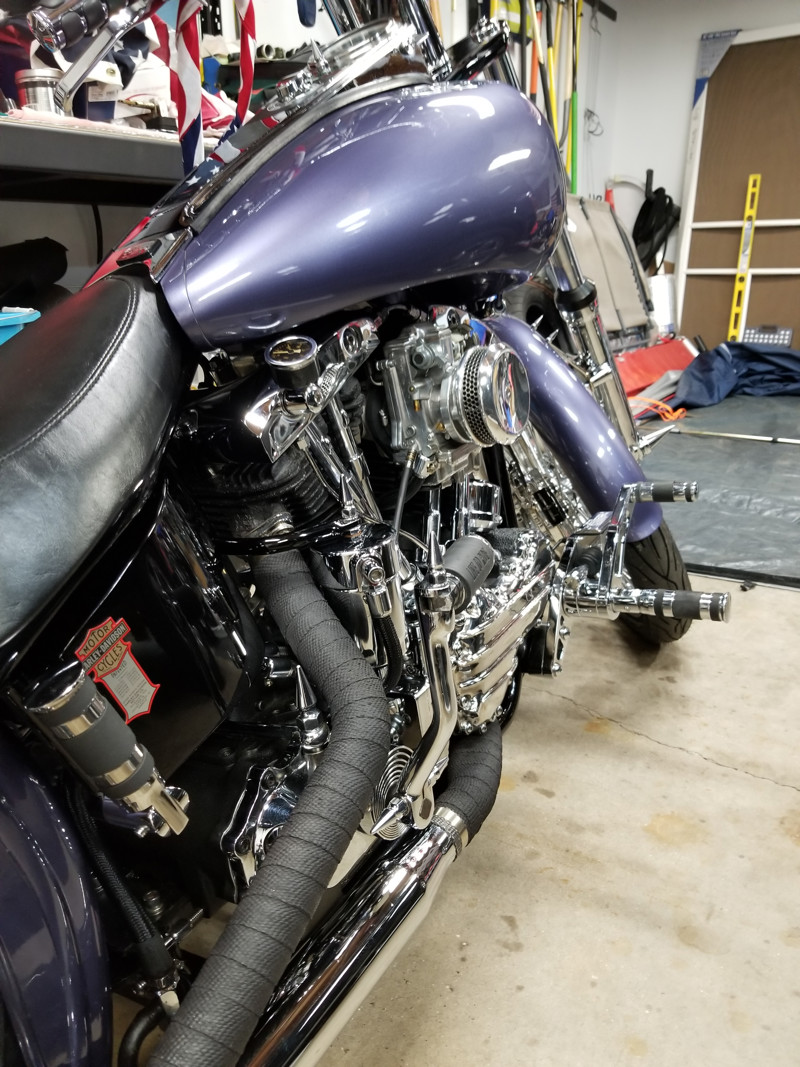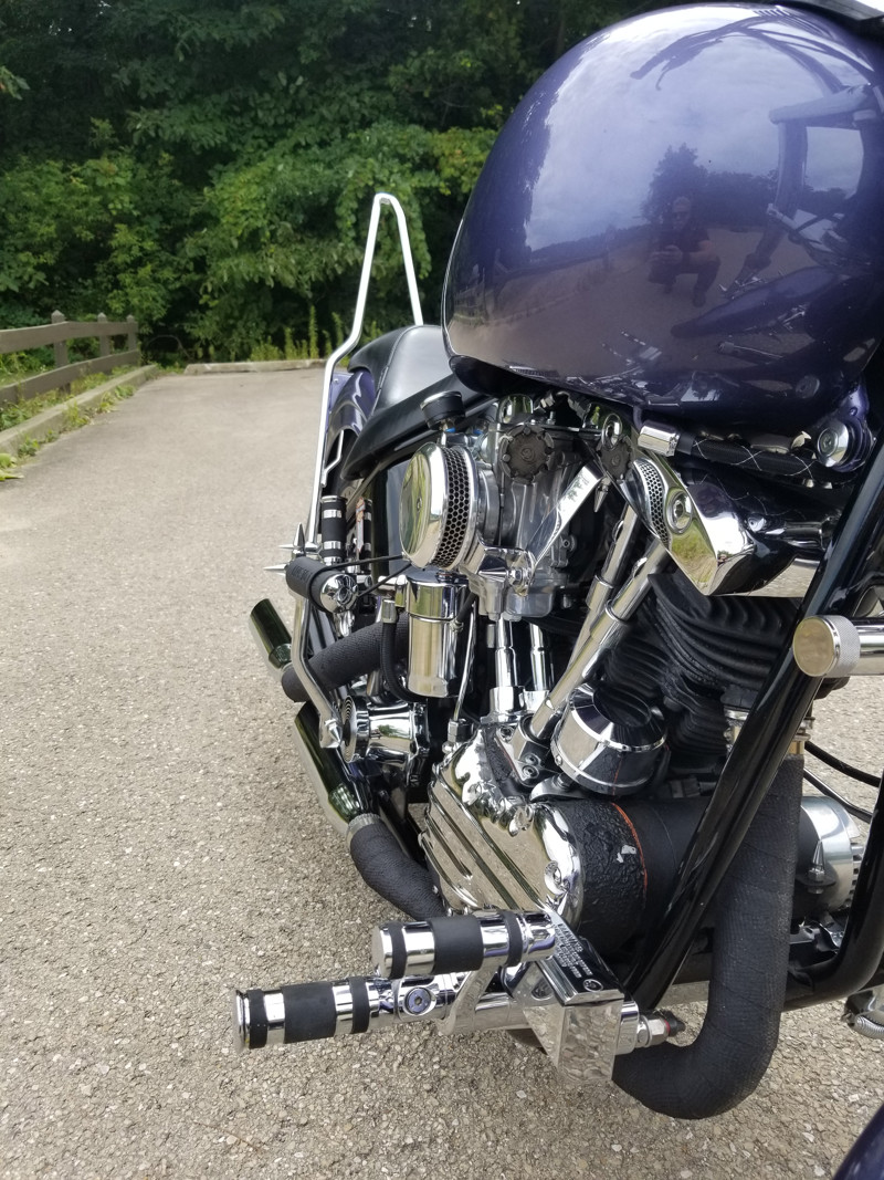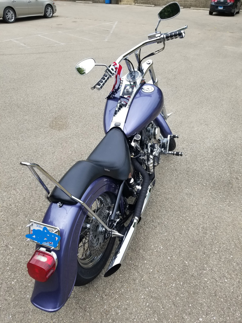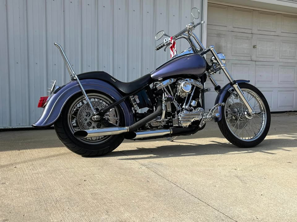 1957 Harley Davidson, Pan/Shovel custom built by me and a friend, color is 1996 Porsche Purple/Blue, PM Brakes front and rear, 1984 wide glide lower legs, forks by frank, billet alum. triple trees with internal fork stops, 6 gallon fat bob tank, new tires with less than 400 miles on them, Mallory elec. ignition, Mikuni HR 42 carb, lots of custom fab done, $18,000 or best offer.