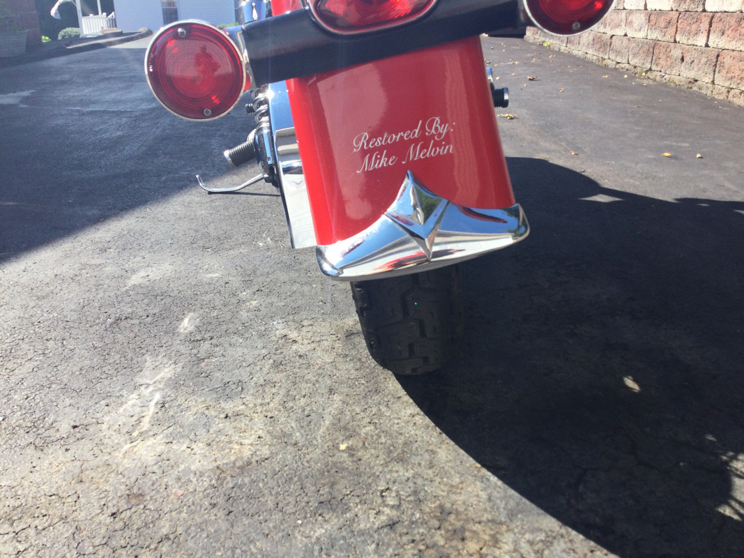 This 1963 Duo Glide has undergone a complete nut/bolt restoration. Engine did not require rebuild as compression was perfect. The engine had electric start conversion installed per customer’s request, the cost of this conversion alone was 3000. Frame was cleaned and powder coated. Practically everything on this bike is new. The chrome is all new and includes case covers, oil tank cover, dash chrome, hubs, wheels, fender struts, mirrors, front and rear fender trim, chain guard, driving lights and signal lights, gas caps, shocks, brake rod, heel/toe shifter, and drag pipes. Other new parts, control levers, cables, gold roller bearing chain, wiring harness, tires, brakes, seat, plugs, plug wires and fuel filter. Top that off with a new two tone paint job. It’s all done for you. The restoration was completed 3 years ago, with only 50 miles on the restoration. This restoration was completed here at our shop. Price 22000. Buyer is responsible for all shipping arrangements and related fees. Someone will be available here at the shop to asssist your shipper. Come see this bike at Old Vintage Guys and Their Bikes here in Tazewell Va.