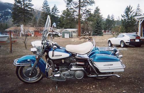 1966 Harley Davidson FLH Electra Glide first year shovelhead. It has 52,657 miles on it. There is no rust on bike. IT is blue and white in color. The pain is cracking on the white on the tank. The bike is all original except the carburetor. The chrome is all in very good condition. Bike runs good and everything works.