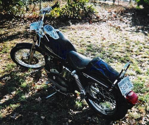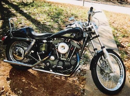 1969 Ironhead Sporty comes with Fatbob dual tank with speedometer on tank, S & S Super Carb., Custom pipes, Front & Rear Wire Wheels, Back tire brand new as well as battery, front tire in good condition, highway pegs, passenger pegs, sissy bar, Custom Mustang seat (black with blue flames), powder coated black frame, new rear brake assembly, LS mirror, 900cc. Top and bottom rebuilt by previous owner. Bike comes with spare Fatbob dual tank, and king/queen seat.