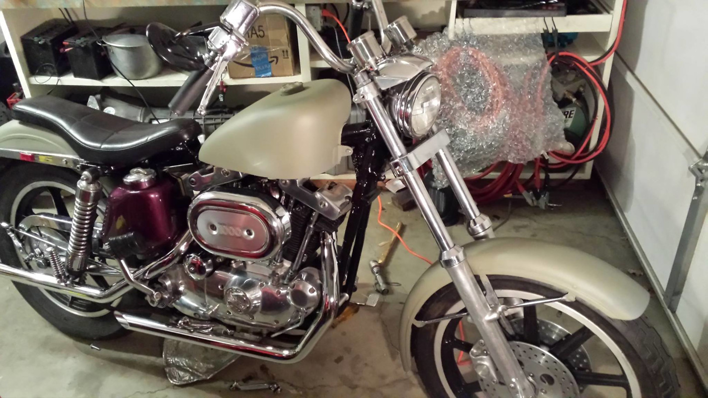 This is a 1973 Sportster ironhead XLH 1000 restored from the powder coated frame up. This is not a "Super H" whatever that is. The web page left no other option. This includes swing-arm bearings, wheel bearings, triple tree bearings, oil pump, engine, transmission, all brake cylinders rebuilt. Dual disc front end, King Sportster tank, rare drum brake type mag rear wheel (500 dollar cost). Zero miles. This bike is wired (rear lights wired but not hooked up as fender will have to be removed for painting). It is primed and prepped for paint, timed, and ready to start. Price is in US funds. Will crate for shipping and help to arrange shipper, or it can be picked up. This bike has never been registered or assigned a VIN, so it is bill of sale only.