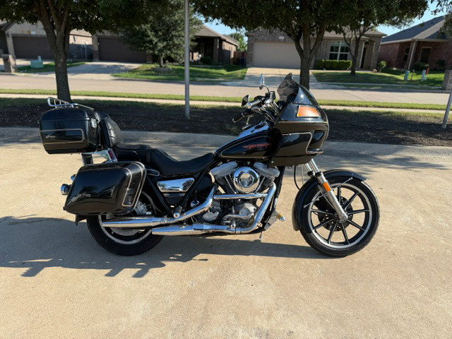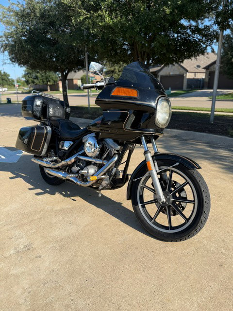 Selling my 1984 Harley Davidson FXRT with the Hallelujah package from the factory. 1st year 80” Evo motor and mostly all original has a PM rear brake, Arlen Ness primary cover, Arlen ness timing cover, klockwerks windscreen, and I added mid controls. Still has the original chain bath, tour pak, clam shells, luggage rack, sissy bar and radio and speakers still work(kinda lol). Does also have tow hitch and wiring and cool Yosemite Sam mud flag.