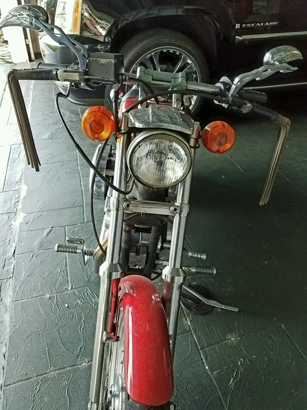 bought from a showroom. Was a customized bike with loads of chrome. no speedometer. I used it sparingly. It is punched out to 1200cc. Need a battery and flush as has been sitting inside my garage. Comes with optional seat. Paid 12500.