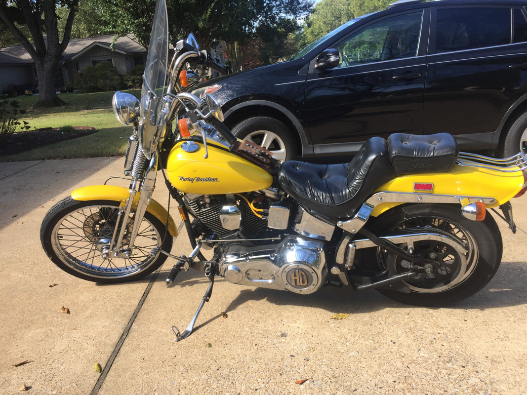 Only owner (except for first 2months). Very smooth road bike with springer front end to which I added the Kuryakyn fender lowering kit, a piece of art in itself. S&S carb and new tires, front and back. All systems and functions were thoroughly checked by a certified HD mechanic who has done all service for past 20 years. Not a leaker and has never been down.