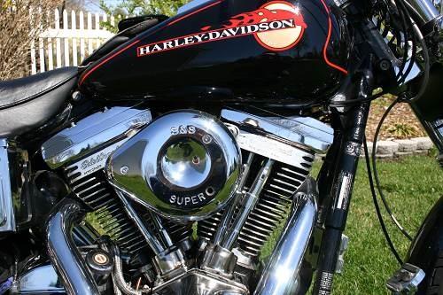 1993 Wide Glide. 1750 96" S&S motor with "G" series S&S carb and air cleaner. "EDELBROCK" heads and lifters. Custom "shorts" drag pipes. All above installed in 2000. Over 20k put into bike. Only 11,600 miles on motor. Bike has diamond cut chrome spokes front and rear. Chrome everthing from front forks to rear spocket,drag bars with gold clock. Bike has "Bad Lands" seat with short back rest. Also comes with stock seat for two, larger back rest and luggage rack. Bike is garaged kepted. Must sell to make room for new bike.