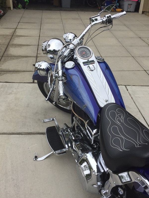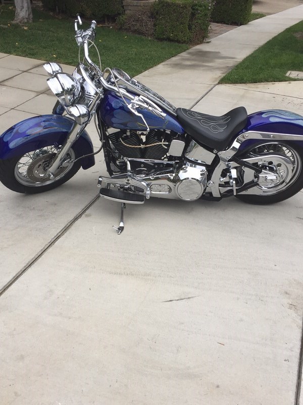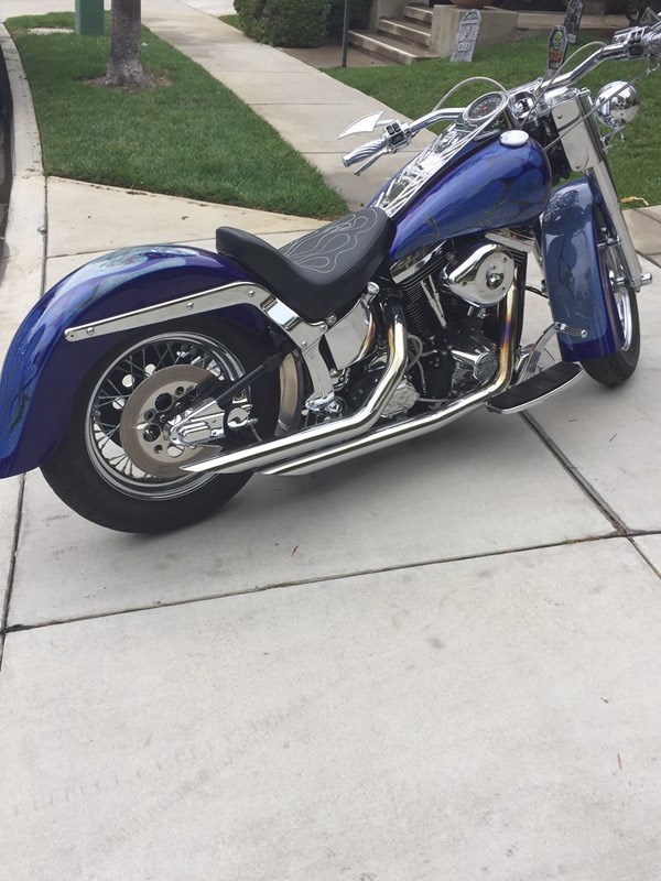 Beautiful 1993 Harley-Davidson Heritage Softail w/ 11,200 original miles. Major service was just recently completed and the bike is as clean as one can get. Custom Al Martinez flame paint scheme w/ stretched tanks and shaved fenders. Extensive chrome parts including, but not limited too, Acutronix shifter, Ness one-piece dash, Paul Yafee mirrors, S&S performance carb, inner & outer primary covers, etc...