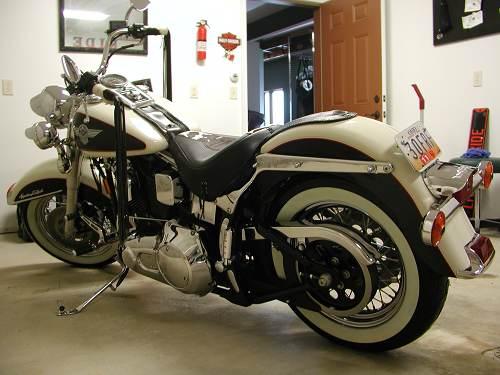 1993 HERITAGE SOFTAIL NOSTALGIA: Excellent condition. All stock parts except for the forward controls and longshot fishtail pipes. All original seats, saddle bags, and backrest are still in excellent condition. Included is a brand new custom cow print seat that duplicates the original, as well as a larger set of saddle bags. Very loud rumble that fits the bike well, and it runs great. Two young children prevent me from riding as much, so I'm selling this one and my wifes 1993 Heritage Softail Classic. 14,425 miles on the Nostalgia. #867 out of 2700. Serious inquiries preferred. Phone calls ONLY! Ask for Scott at (614) 507-0882.