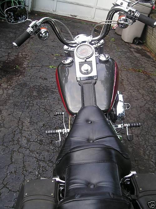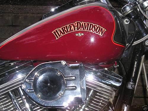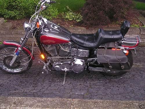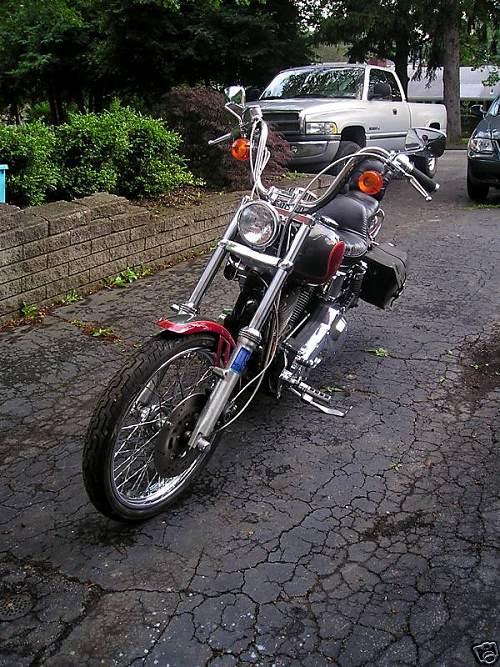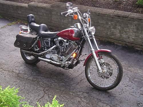 You are looking at a stock 1994 Harley Davidson FXDWG Dyna Wide Glide, 1340cc. It has 21,730 miles on it. It has a two-tone maroon and metallic grey color with an orange pinstripe. It has extra chrome on the handle bars and spiral spokes on the front wheel. The bike has never been wrecked, never been dropped, and has been garage kept. Included are the saddle bags as well as a handle bar bag. It comes with 1 key. Also included is an official factory manual from Harley Davidson Inc. for the 1993 and 1994 Dyna Glide Model. The title for this bike is clear and in hand. This bike was purchased used from Phantom Motorcycles in West Mifflin, PA. Not interested in trades. If interested please email or call 412.881.4233 and ask for Ken.
