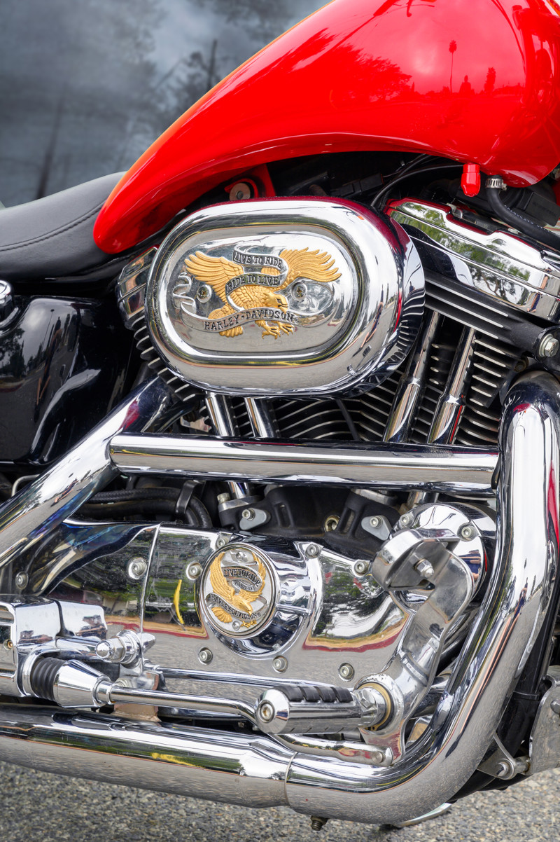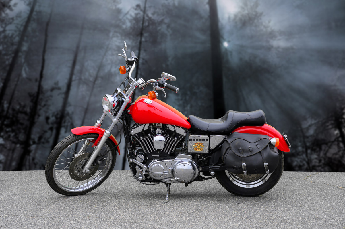 1200 CC Sportster with custom chrome, Custom Teardrop Tank, Custom Mirrors, Leather Saddle Bags, low miles, excellent condition