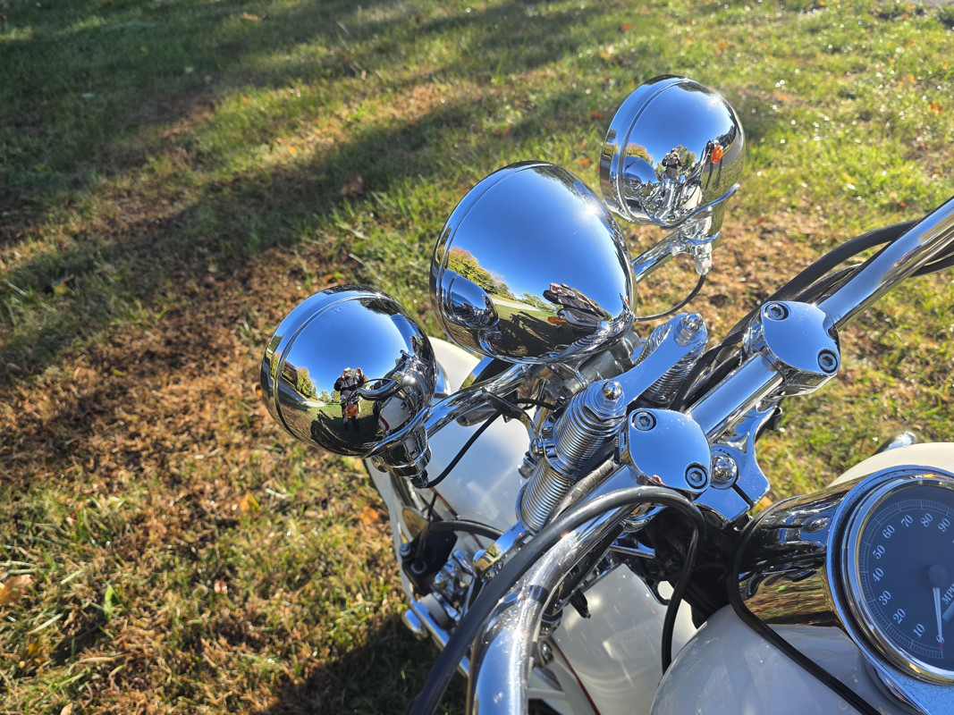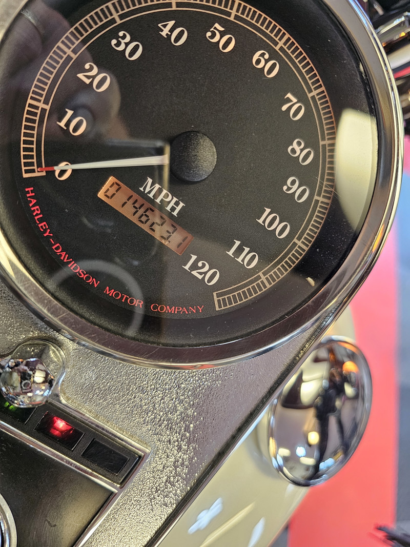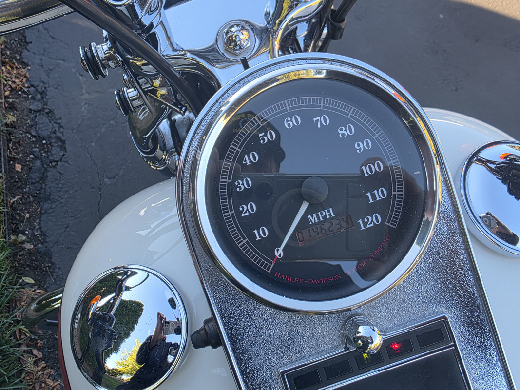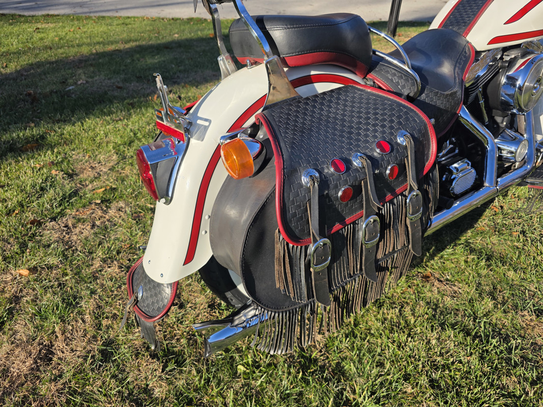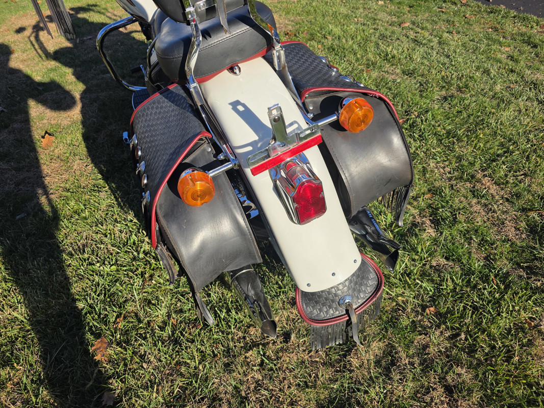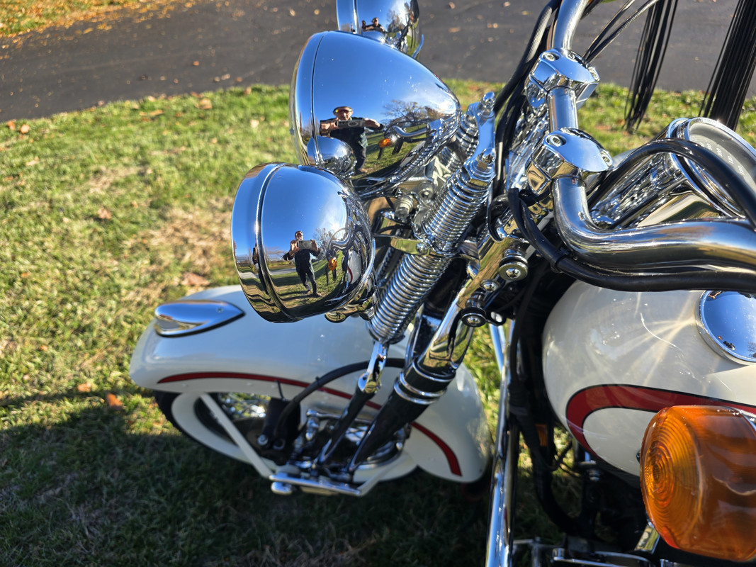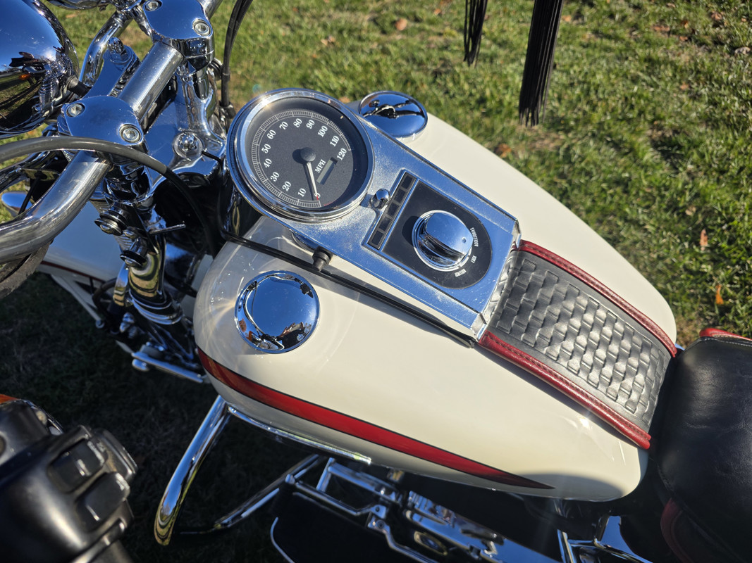 Come see this beautiful 1st year Heritage Springer finished off in birch white w red stripe with only 14623 miles. Same owner since 1996. Equipped with Screamin Eagle fishtails, sissy bar, quick remove windshield, mudflaps, floorboard fringe , new tires and more. Looks, runs and rides like a much newer bike. I have 4 of these and thinning out my herd.