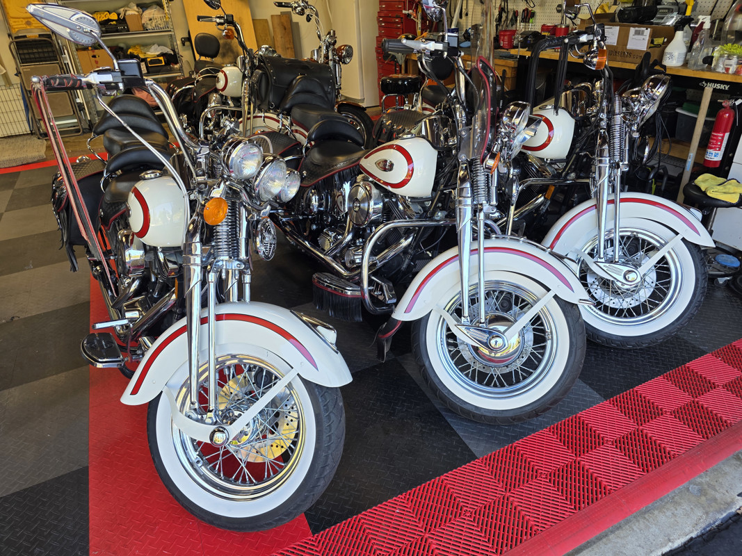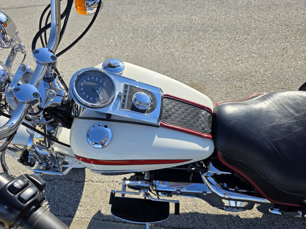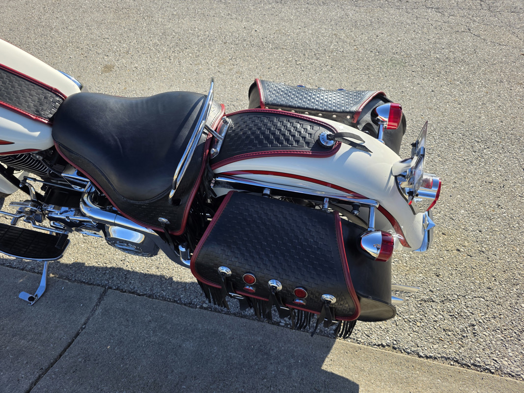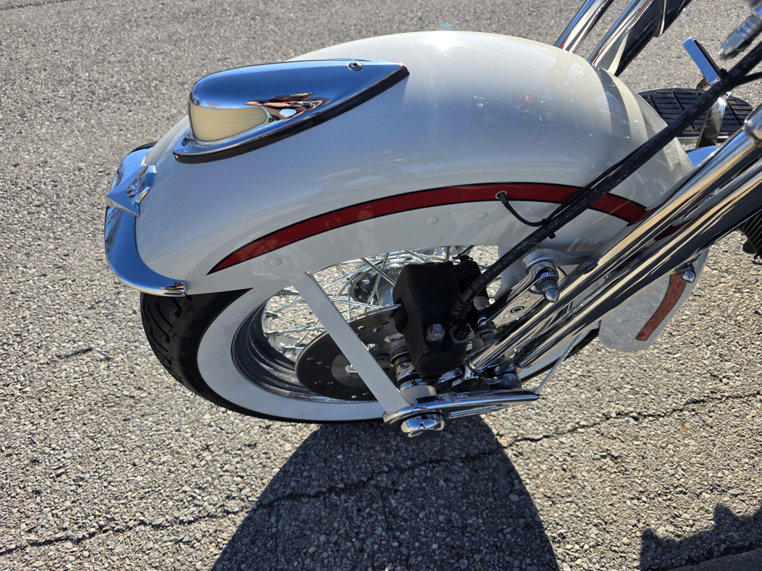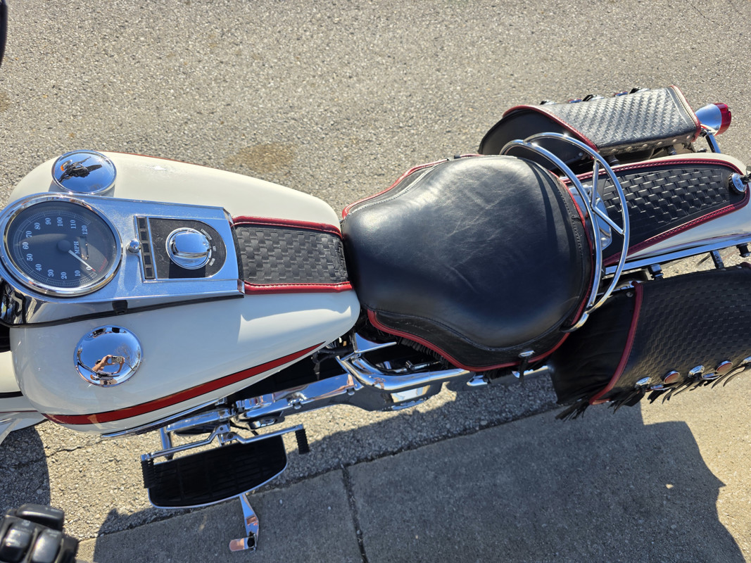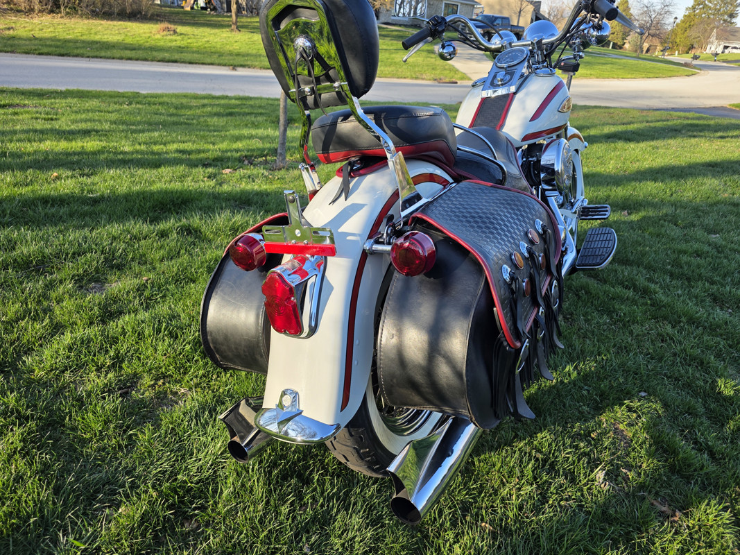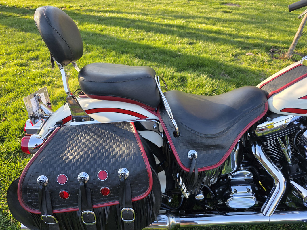 Take a L@@K at my beautiful 1st year Heritage Springer nicknamed the Ol Boy by the HD crowd. 16K miles finished off in birch white w red stripe. Really nice shape and runs and rides like a dream. Has Slip ons, Stage 1, quick remove sissy bar, fender bra for the solo look. Almost 30 years old and still my favorite harley. I have a blue stripe I ride myself. NOT a destress sale, low ball offers will be ignored. I had a collection of these and am thinning out the herd. Also have another with 7K miles.