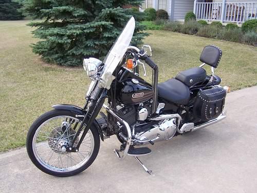 this bad-boy is in perfect shape with new rear tire and loads of options: dual fish-tails, bags, foot-boards, buckhorns, tool-box, windshield, back-rest. yes, it has the original parts, too, and we have a fortune it her. the roadking is taking her place. give her a good home.