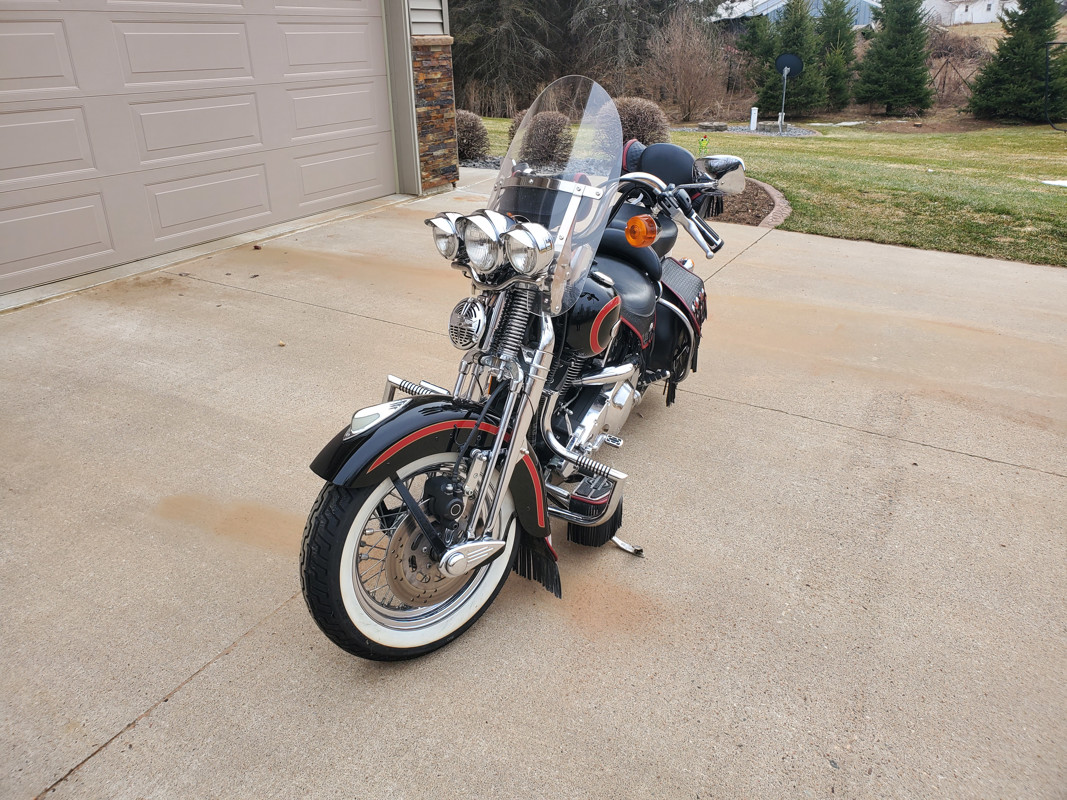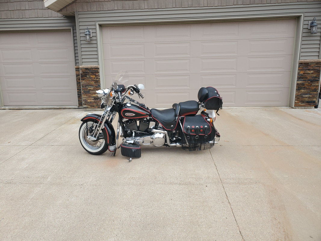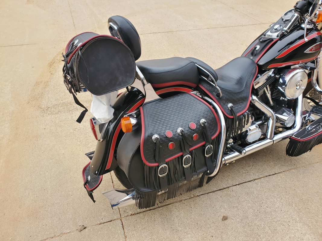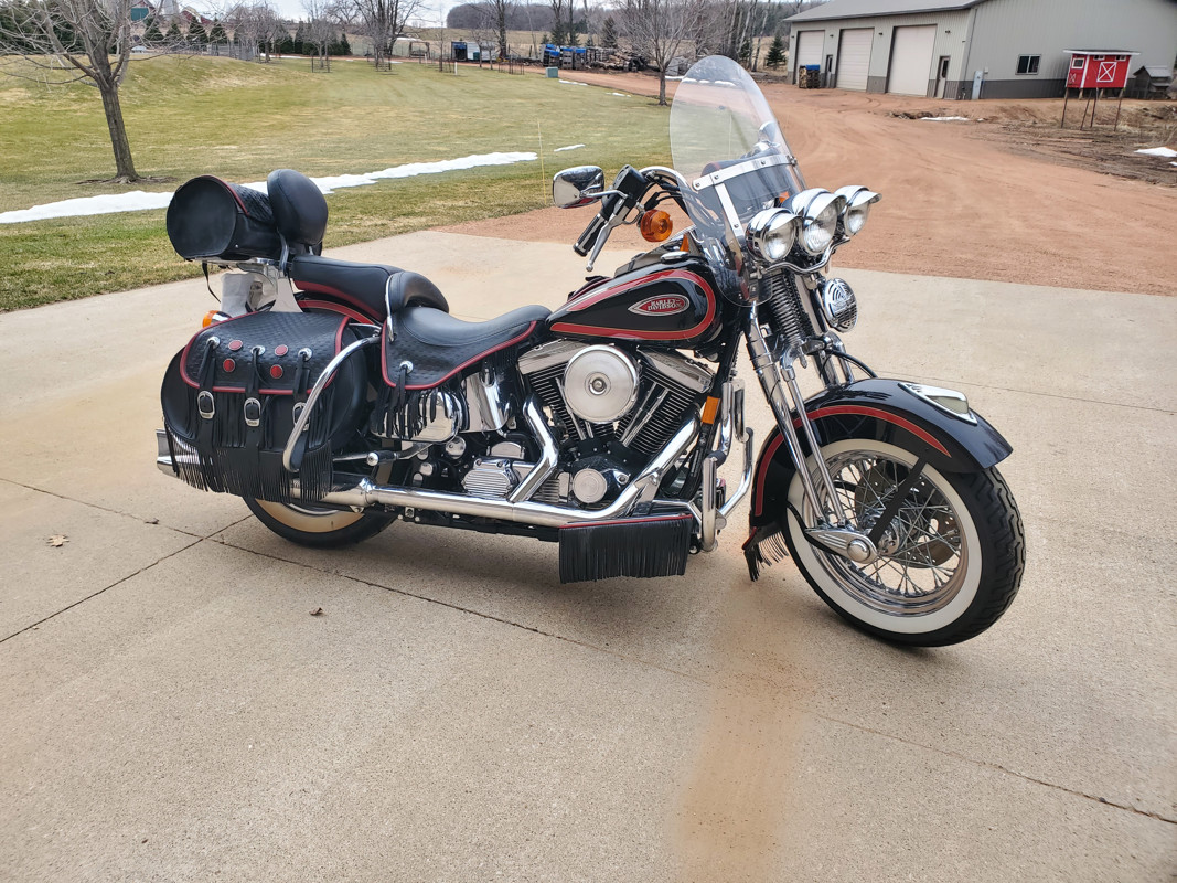 All original, beautiful 1998 heritage springer. With orginal top roll bag, the top roll bag just sat on the shelf in the house. Those are very hard to find. All factory never modified.