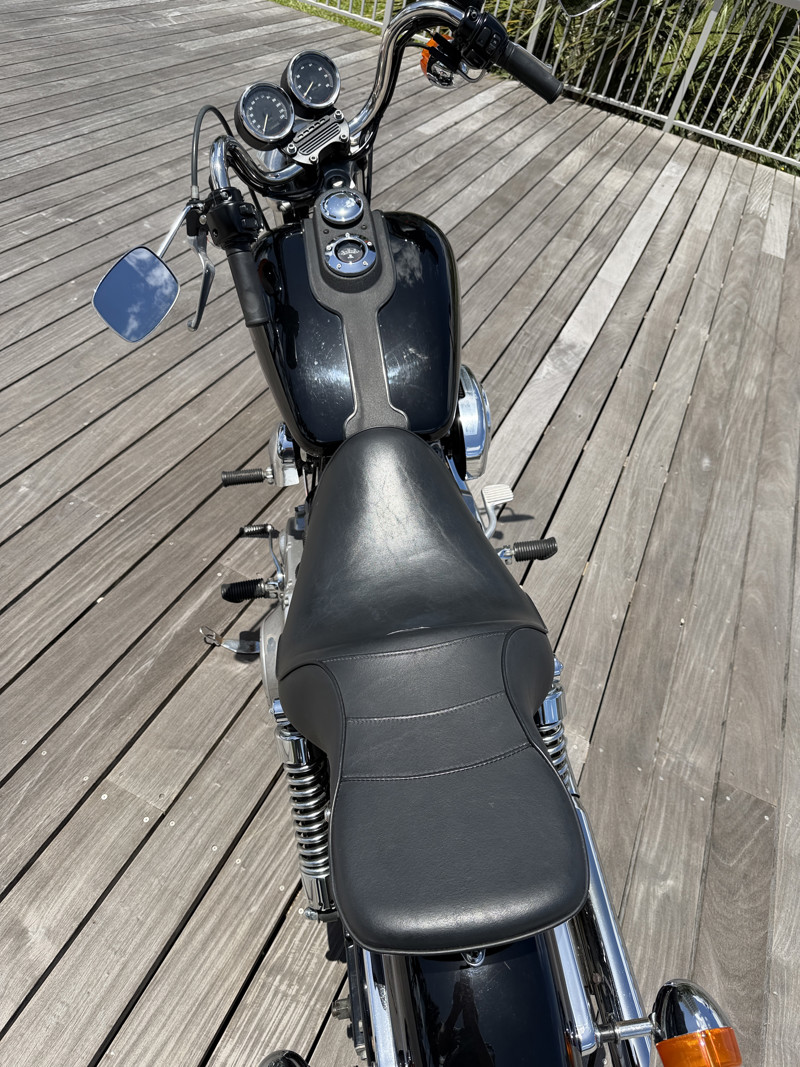 The Superglide setup is the club preferred bike. Agile and easy on all rides. Add a clip-on windshield when you need it otherwise ride free as the wind takes you. Just a great setup and easy to work on bike.