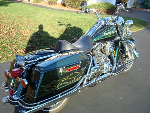 THIS ONE OF A KIND BLACK AND GREEN BEAUTY IS IN PERFECT RUNNING CONDITION WITH ONLY 12,000 MILES ON THE CLOCK. IT IS THE MOST ENJOYABLE, VERSATILE BIKE I HAVE EVER HAD IN OVER 34 YEARS OF RIDING. THERE ARE THOUSANDS OF DOLLARS IN HIGH QUALITY ACCESSORIES. THIS MAGNIFICENT MACHINE CAN BE A BOULEVARD SOLO CRUISER WITH ITS CUSTOM TWO PIECE SEAT...JUST RUN THE SOLO SEAT WITH THE LEATHER BIB ON THE BACK