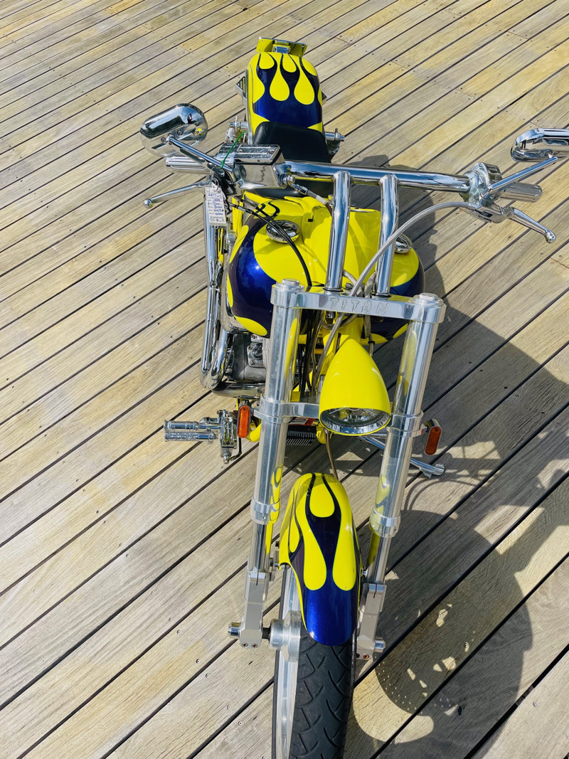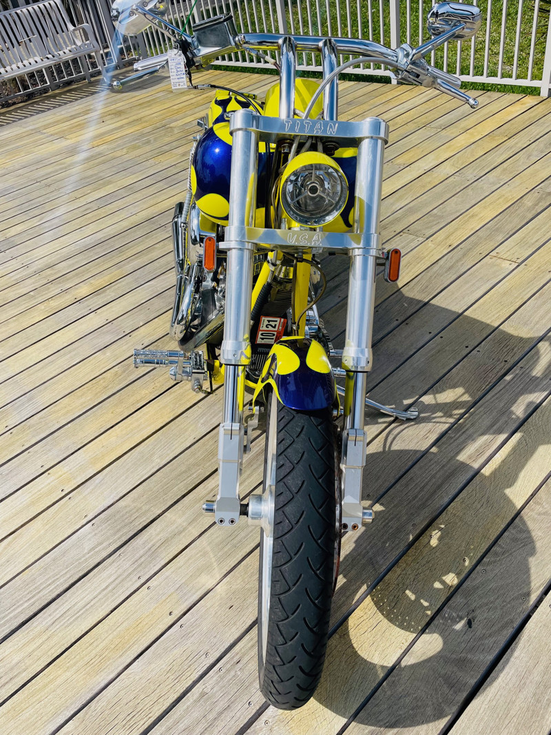 Titan was based out of Arizona and was the first company that started making custom choppers in production back in 1995. They were successful but the owners at that time did not have any business wisdom and the company went into receivership in 2001 when the market was hot. Rescued by one of the Titan dealers it continued on till 2007 when pretty much all of the custom builders were filing for bankruptcy and the custom chopper market tanked.