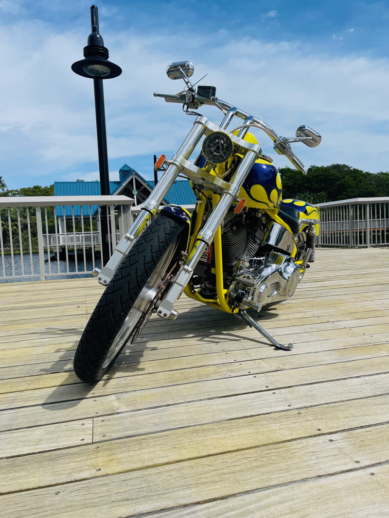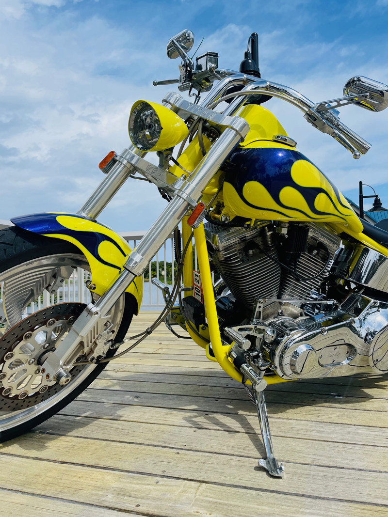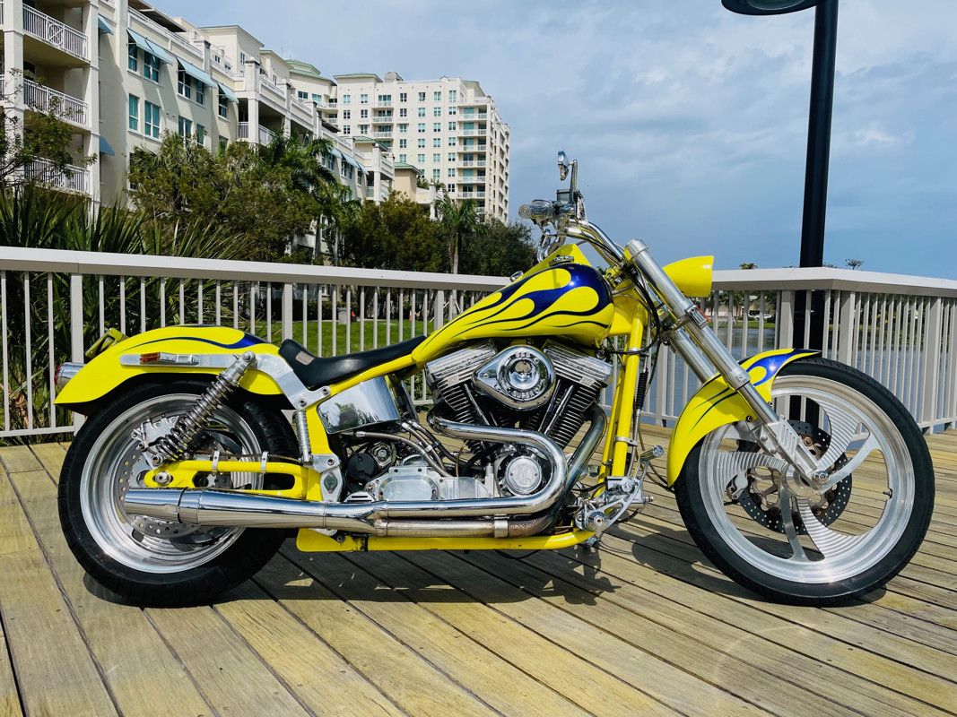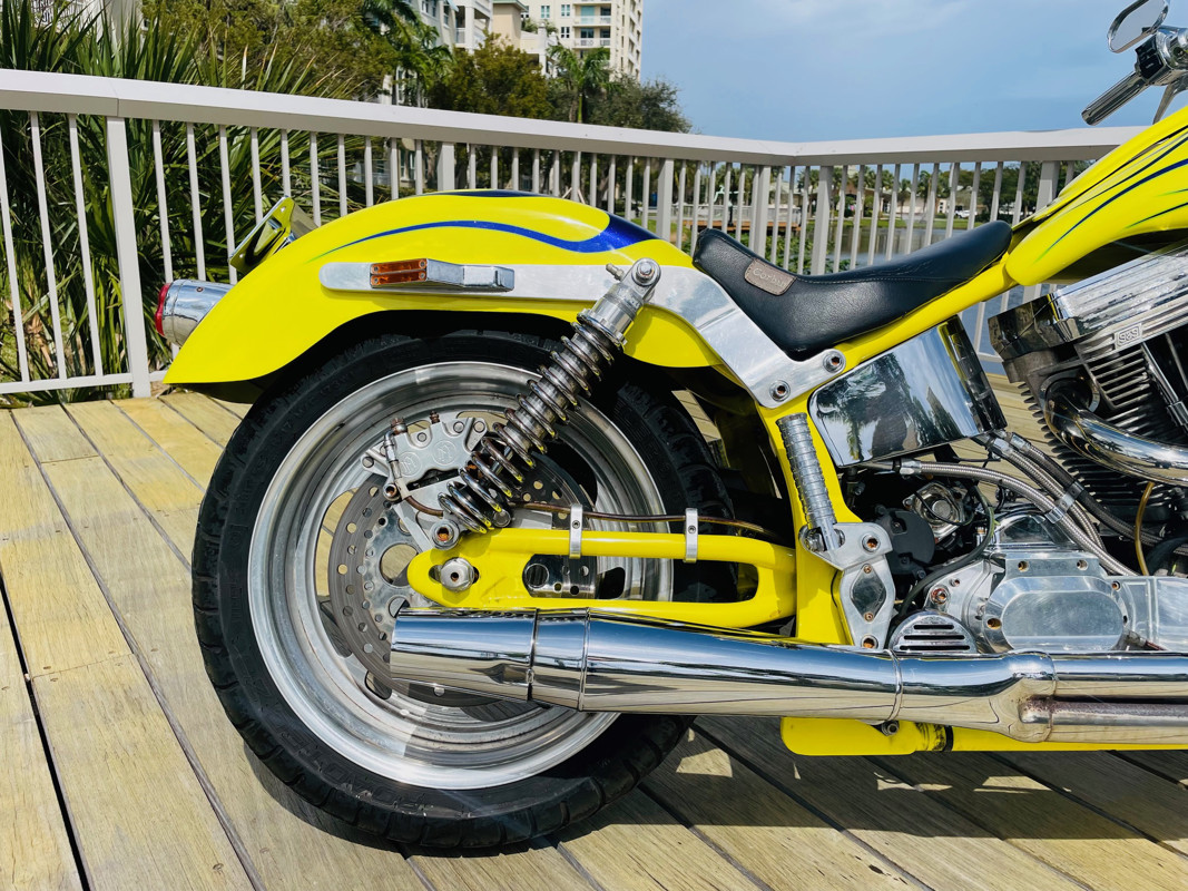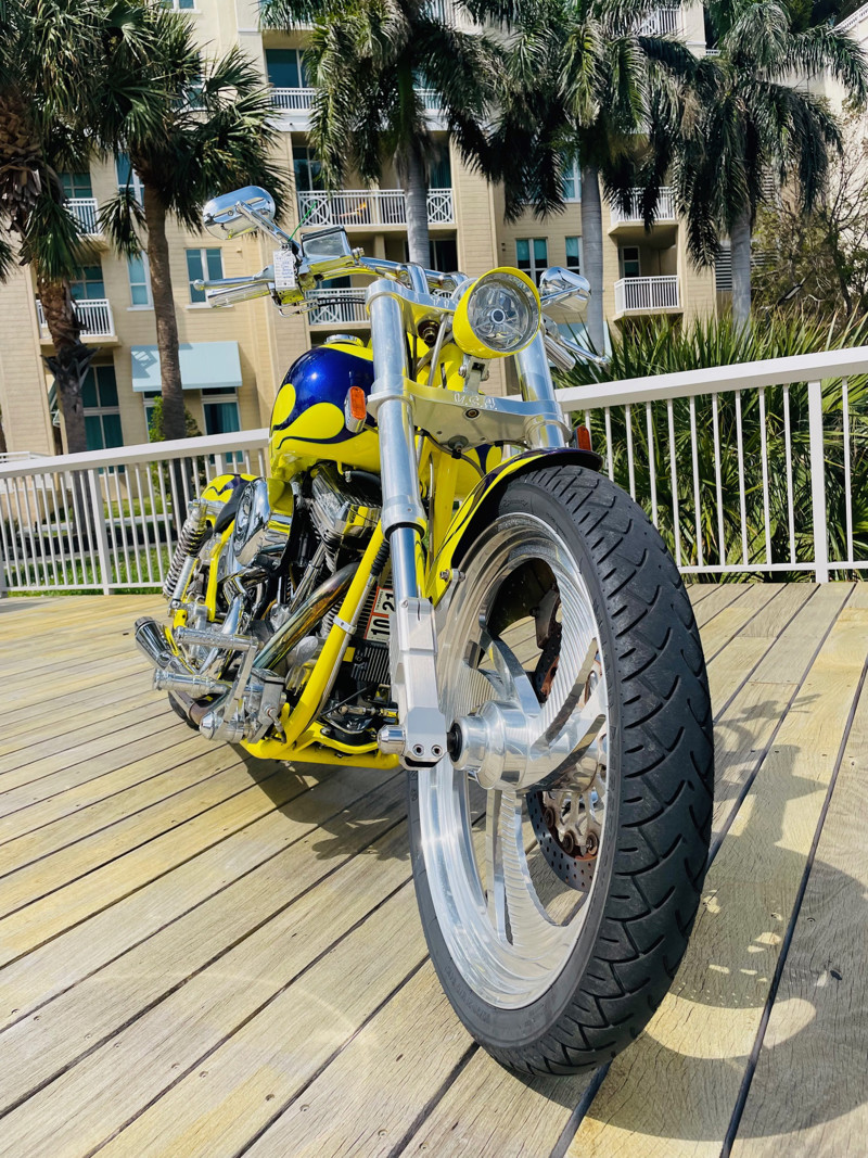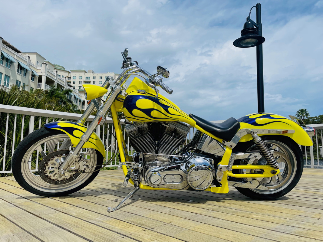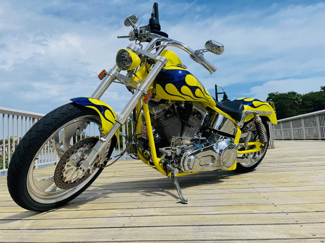 This bike is finished in yellow with nice custom paint. One of the original early Titan versions of the Gecko RM, a pro-street version with a S&S 96ci motor and 5-speed transmission. Plenty of power on this 620Lbs bike. Range still at 150miles with a 5gal fuel tank. The S&S Carburetor is fully equipped to power this motor and get the best out of it.