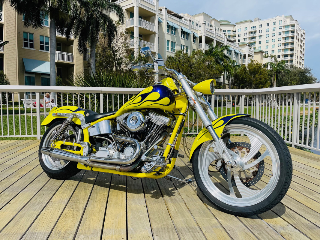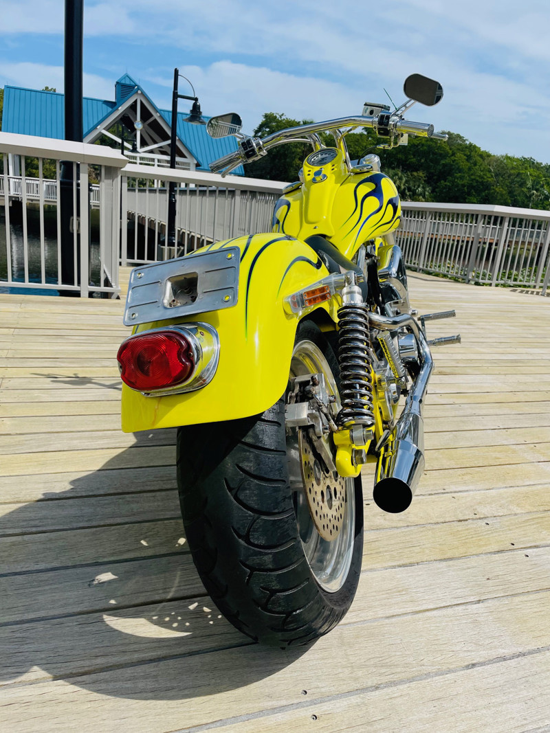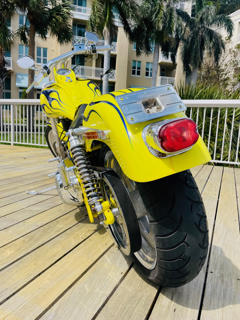 Small blemishes on this bike as to be expected on a 25-year old chopper but overall in good shape and certainly that head-turner you were looking for. Some chrome is flaking. See the walk around video for details. Tires are 2007 and should be replaced before riding this bike. The bike rides excellent. New Lithium battery installed.