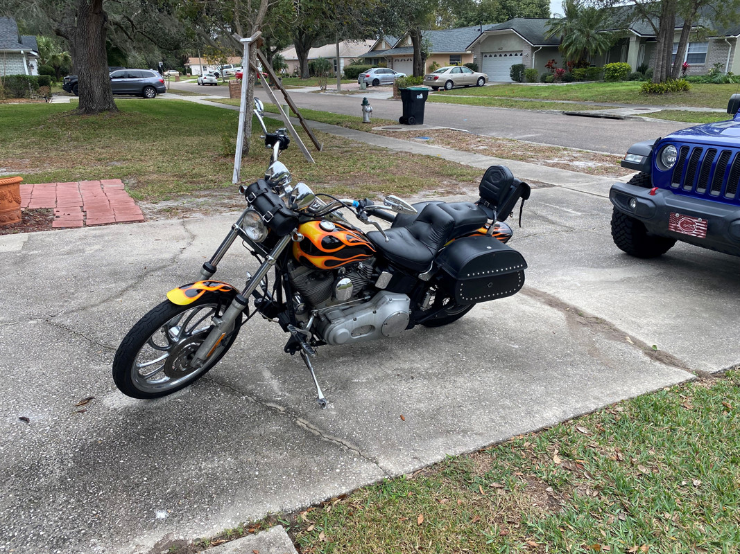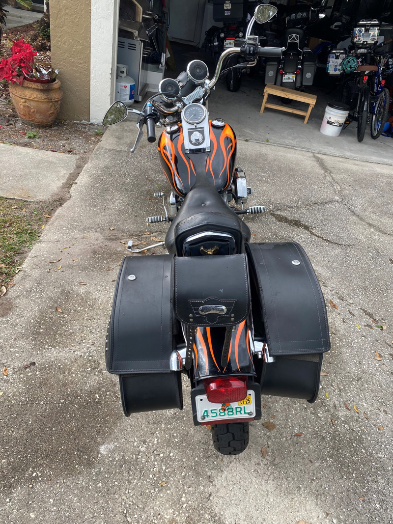 Runs great. New battery. Loud pipes and cool paint job. Leather saddle bags. HD audio speakers.
