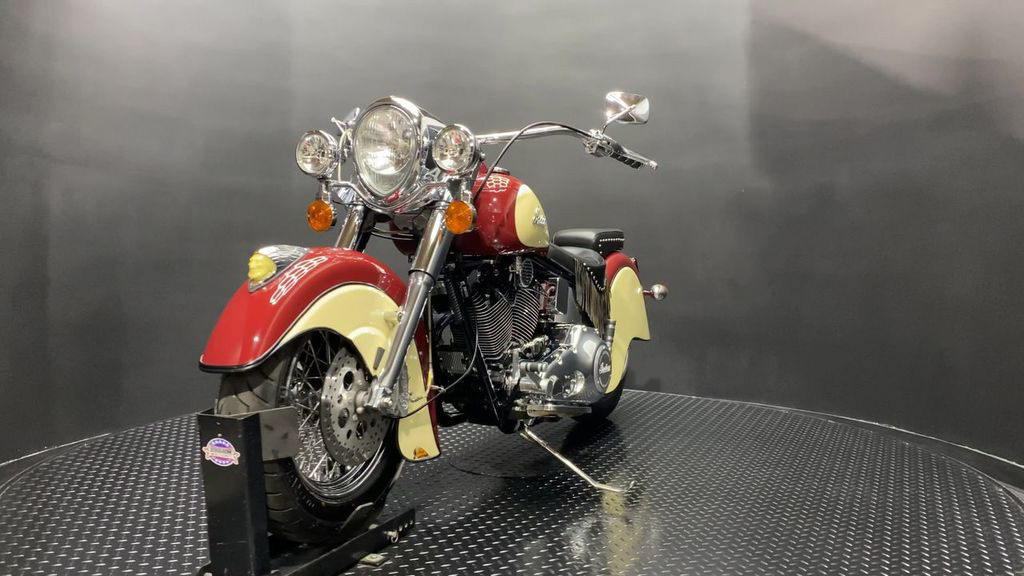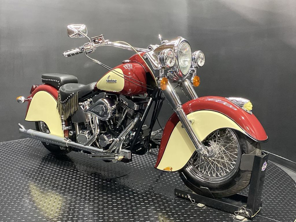 YOU ARE LOOKING AT A 2000 INDIAN CHIEF WITH 2,594 MILES ON IT. IT IS INDIAN RED AND IVORY CREAM IN COLOR AND POWERED BY A 1442CC (88") CARBURETED ENGINE AND 5 SPEED TRANSMISSION. THE BIKE COMES WITH 2 KEYS. THERE ARE NO SCRATCHES, DENTS, OR DINGS THAT I CAN FIND. THE CHROME AND ALUMINUM ARE IN GOOD CONDITION. THE TIRES HAVE GOOD TREAD LEFT ON THEM.