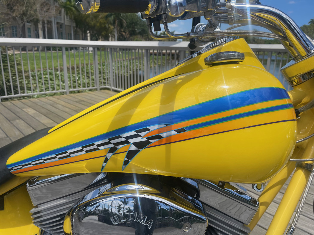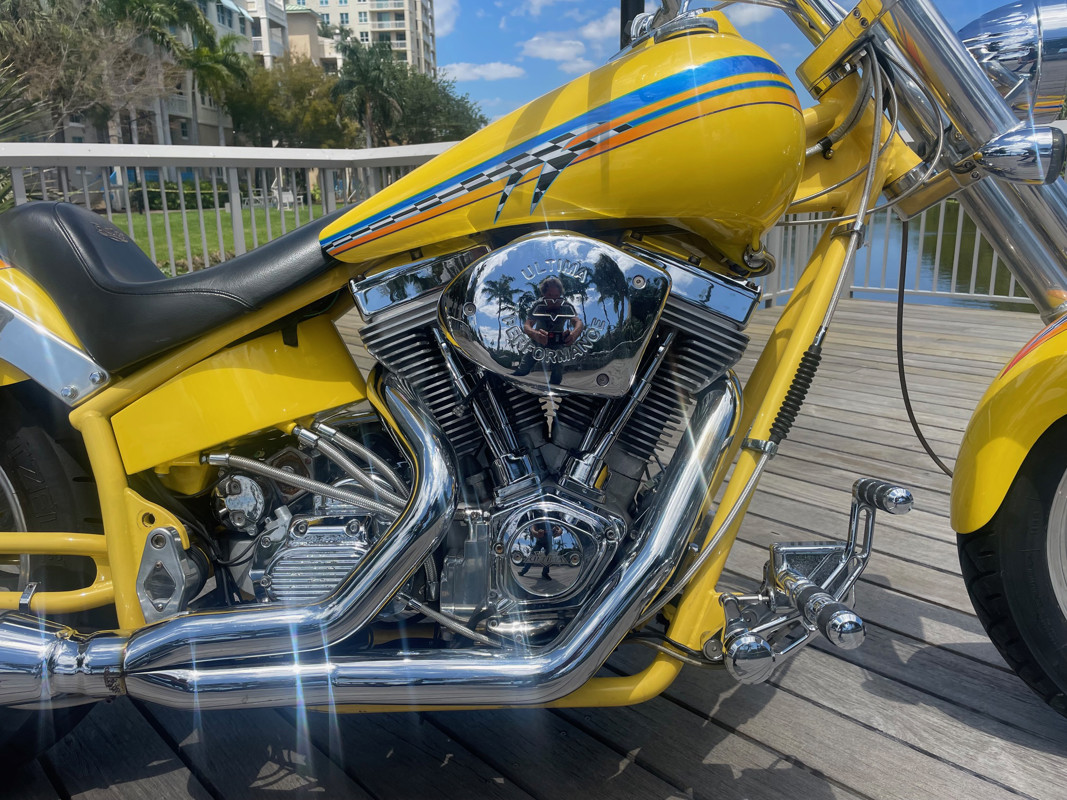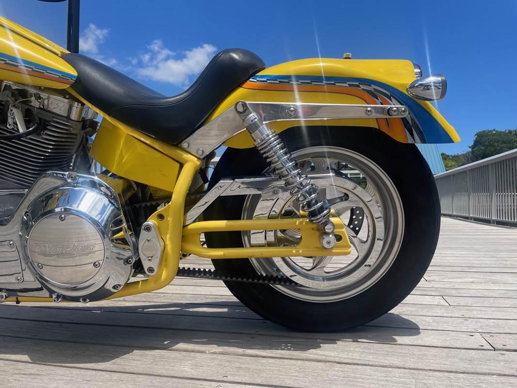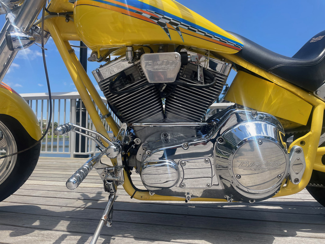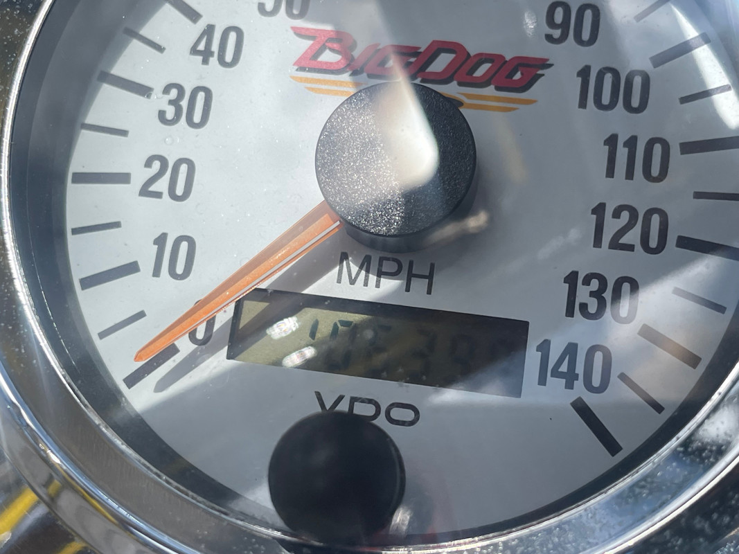 The Pro-Sport model of the Big Dogs is a unique bike. Few of them were made. It is a model that is much more aligned with the traditional choppers and pro-streets than the softail models. Full rear suspension and a unique rear fender with integrated taillight. The bike has excellent custom paint and is overall in great condition with very minor flaws. The motor is most likely an Ultima motor and supposedly was bored out to 129ci. We did not get any documents on that but the motor certainly pulls heavy. See the walk-around video for details on condition on our website.