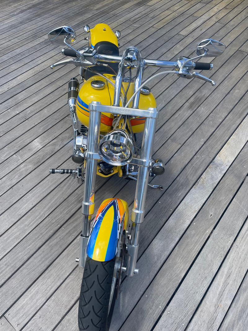 We do not recommend any custom choppers for new riders even though this is a very well-balanced bike.