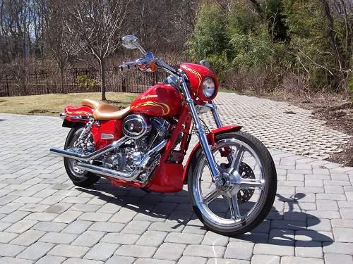 Custom limited special edition (Switch Blade)Custom red with matching frame,ostrich seat, 23K gold leaf flames, powder coating,mag wheels, new tires, Vance & Hines pipes, many Harley chrome accessories, jet kit and much more. Harley warrantee through 2007. Excellent original condition. Was on the cover of 4 major bike magazines. Collectors item. Exceptional value! Financing available.