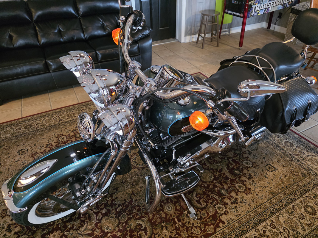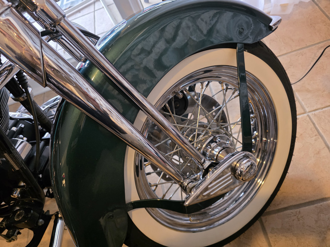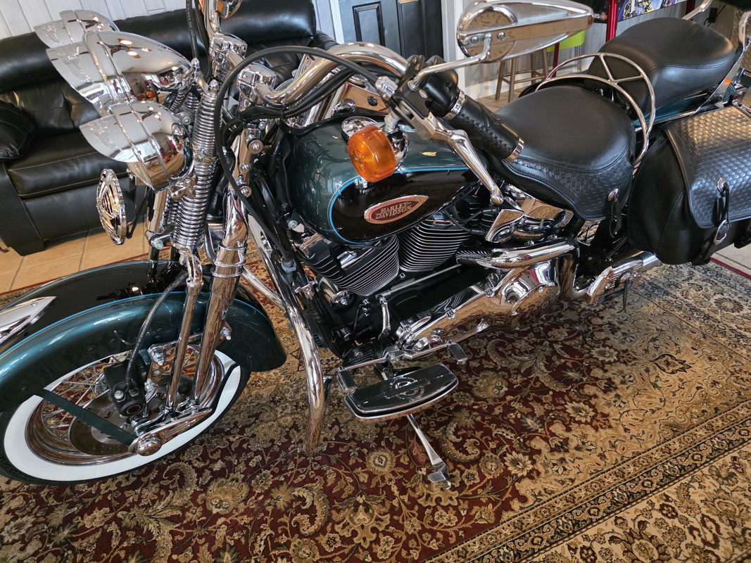WOW !!!! Take a look at this beautiful Heritage Springer finished in suede green pearl and vivid black. 1450 injected, fishtails, stage 1 power commander, quick remove sissy bar, luggage rack, quick remove windshield, custom grips, boards and more. Just serviced and runs like new. Tires still have the nubs on them. I have 6 Springers and I'm thinning out the herd. 3 left. Will trade for a low mile 97 Heritage Springer and possibly give you some cash. You will not find a cleaner one than this at any price. Located in Noblesville Indiana.