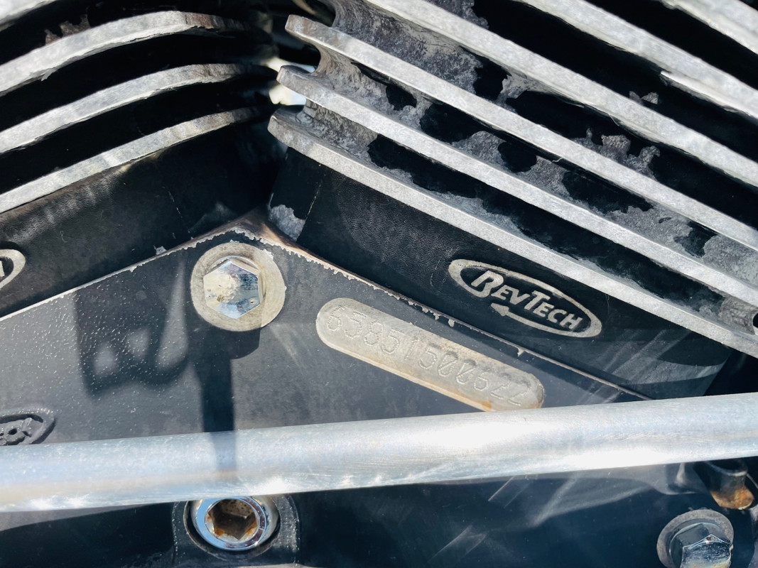 A Rev-Tech powered custom chopper that, as you can see by the pictures, needs some love and care. A perfect project or turn this into a “Rat Chopper”, old-school style. The bike runs excellent now. So mechanically there is nothing to be done. It is a fully functioning bike that was brought back to life after sitting for several years. We re-lined the tank, did a full carb rebuilt and got this bike back on the road. Now either go all the way in the “rat” department or start making things pretty again. See the walk around video on our website that shows the condition in detail.
