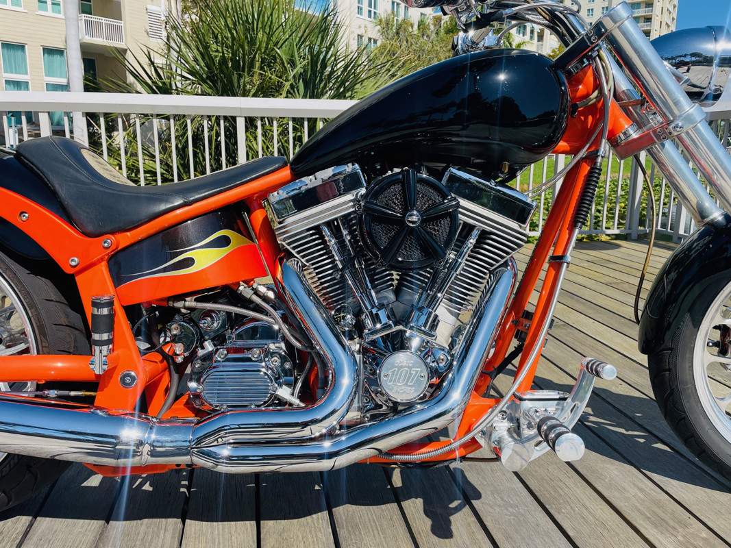 We have been told that this bike was bored out to 129ci but have not received any documentation. Although the bike feels very strong and the engine upgrade is likely we do not have documentation and the buyer should not rely on this as a fact!
