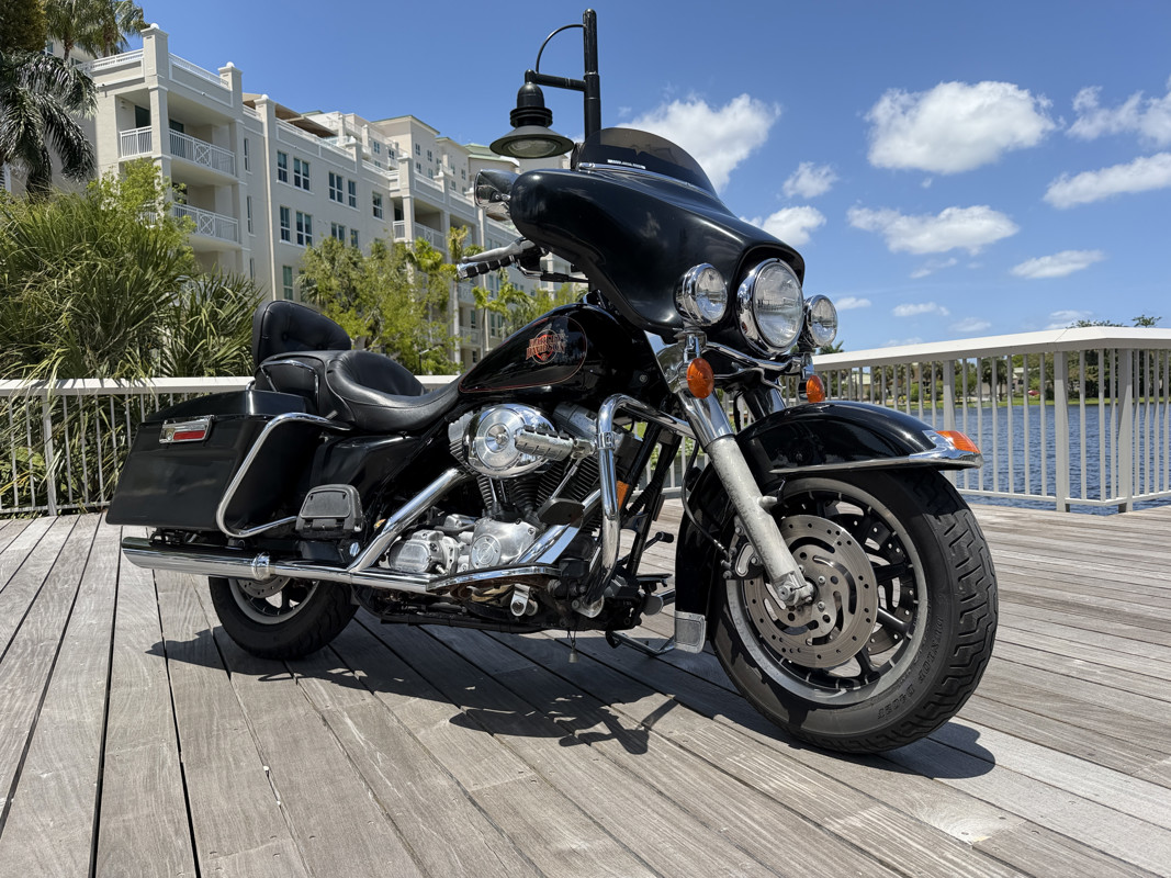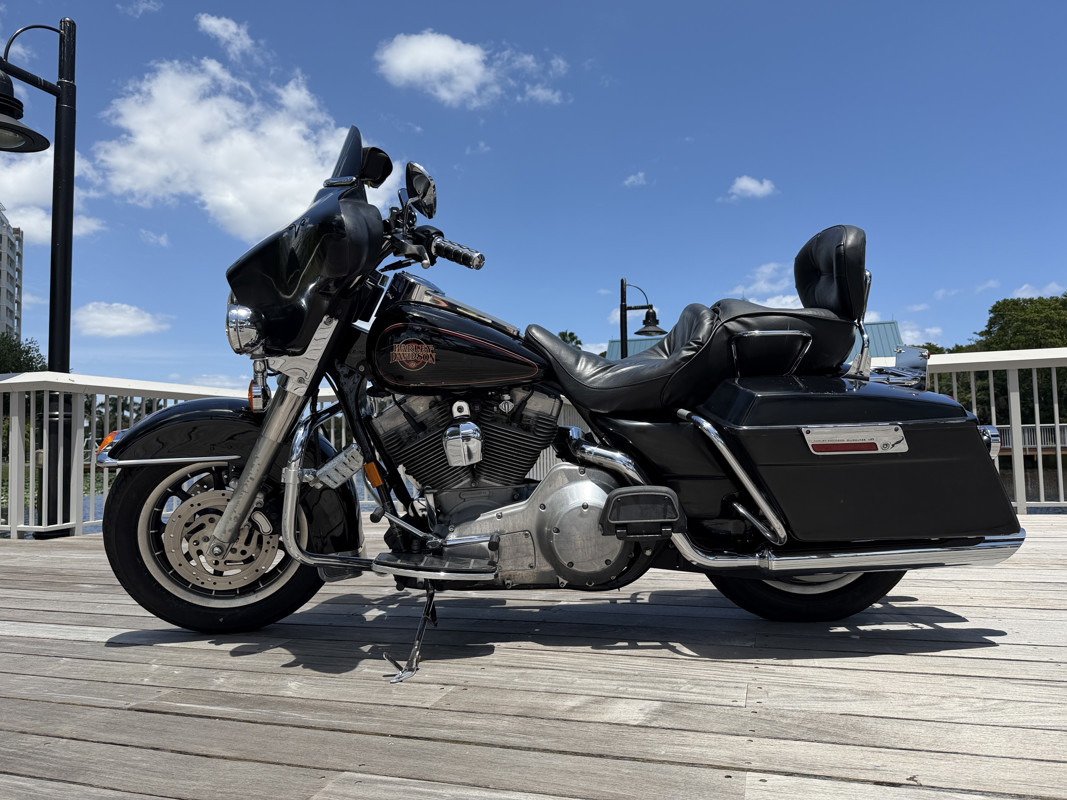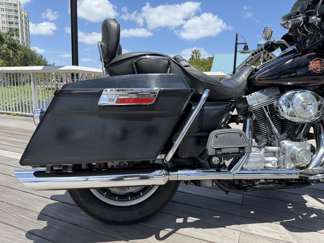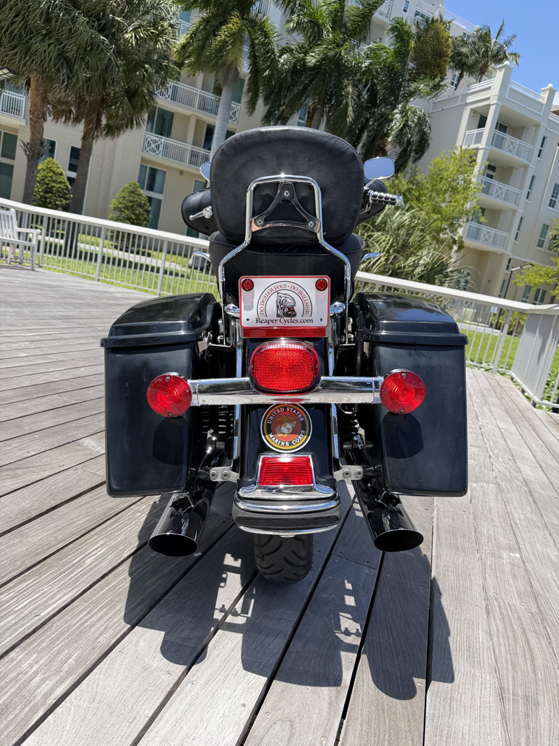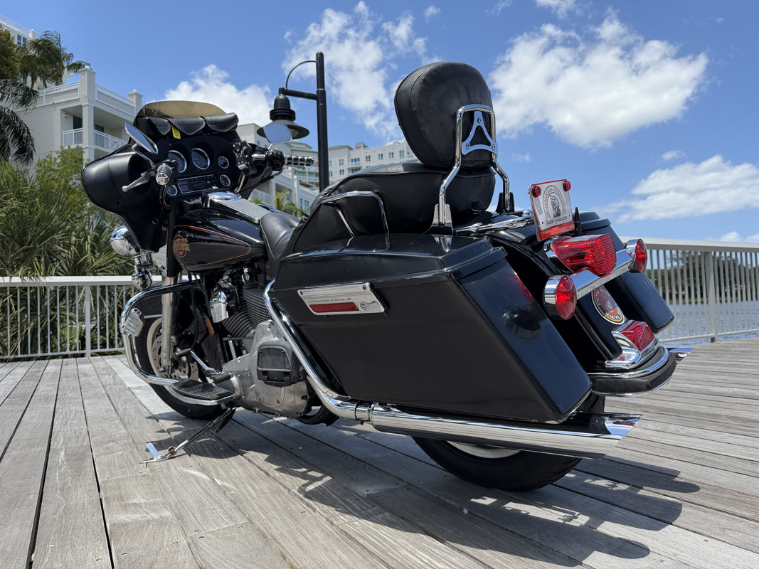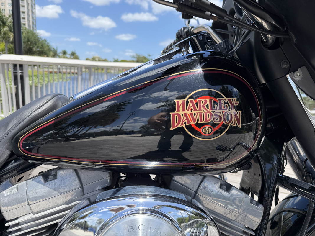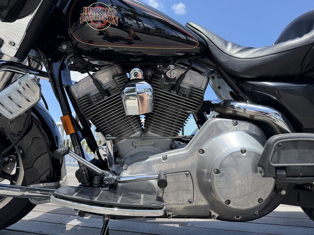 The true Harley icon with modern Twin Cam motor but still carbureted. Runs perfect. Fires right up when you need it and just wants to go go go. Super low 29K miles means that the motor has just been broken into. Treat this bike well and you have 100K more to go. This baby might be better prepared to go riding than you are. Radio works but we did not test the cassette player. Small scratches here and there that come with age but nothing serious. See our walk around video for details. The front brake could use a brake flush and bleed. Works fine but has a delayed point of engagement.