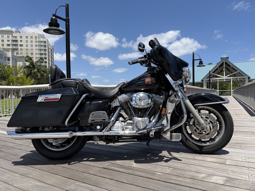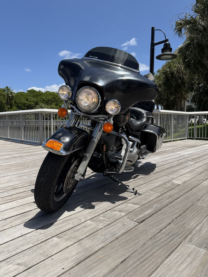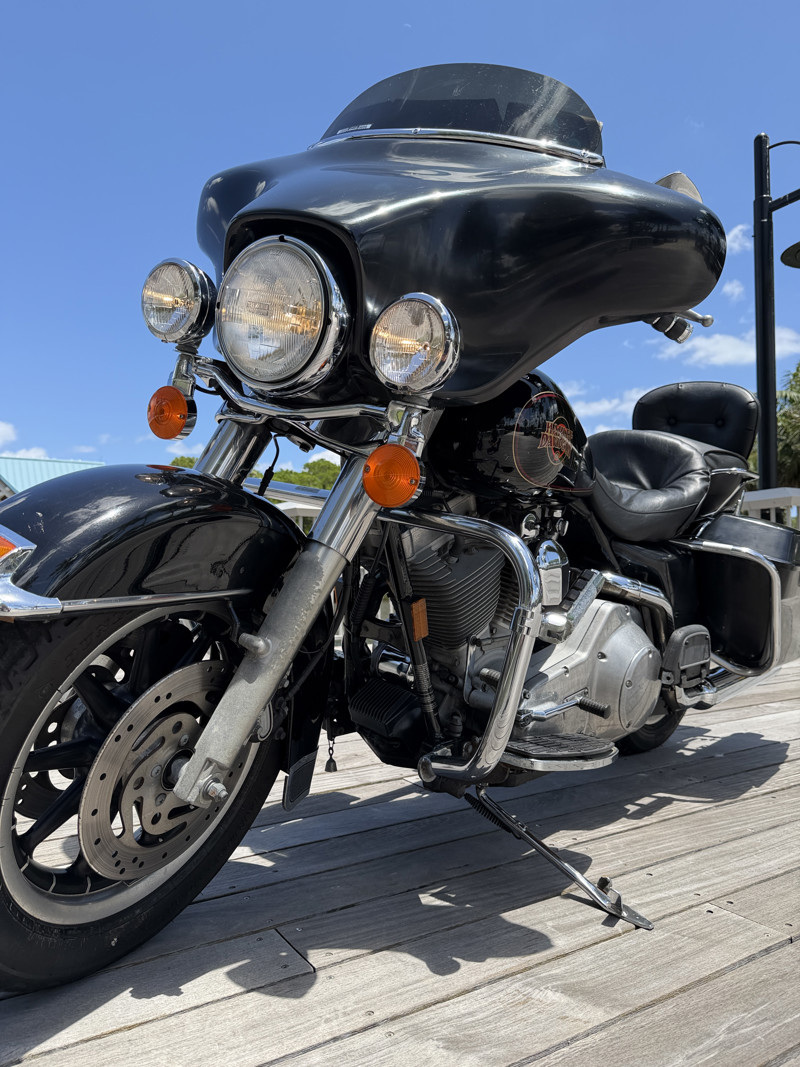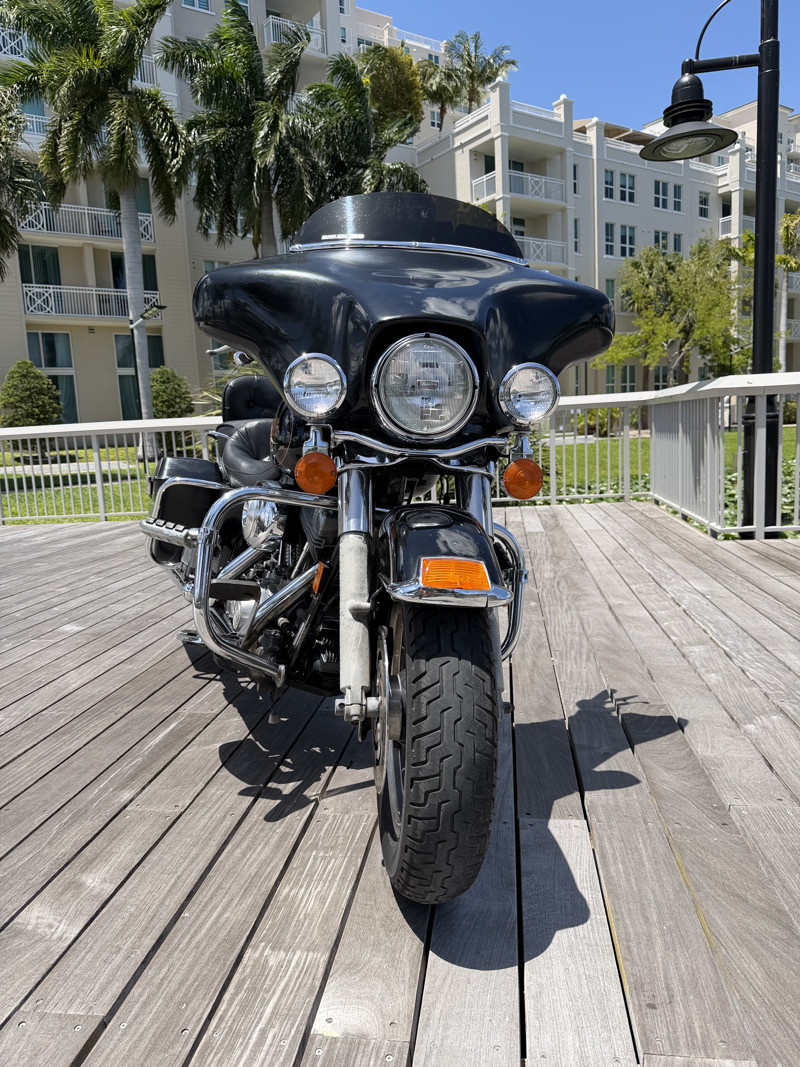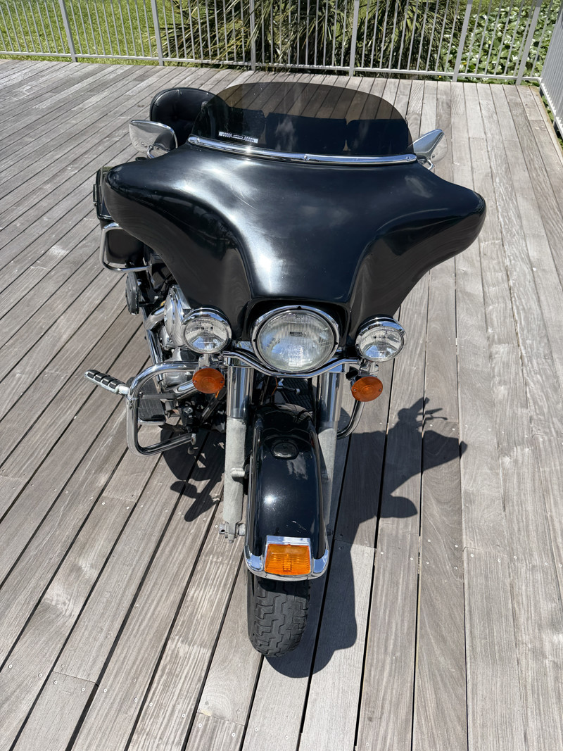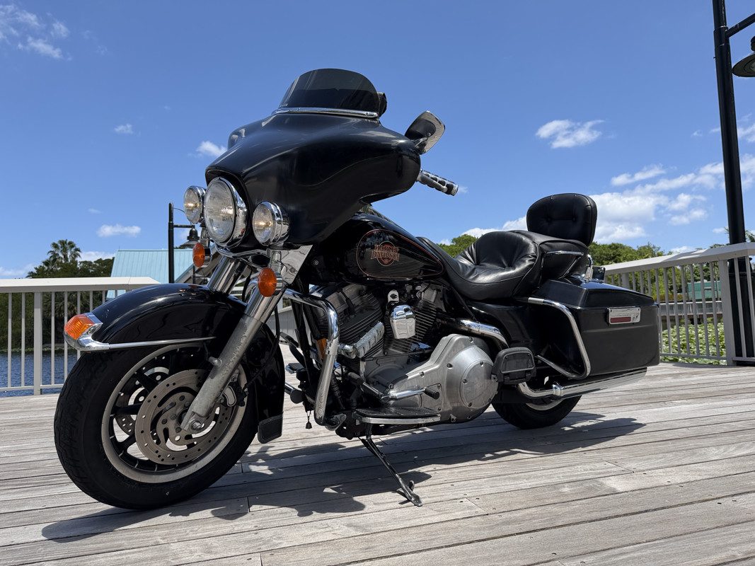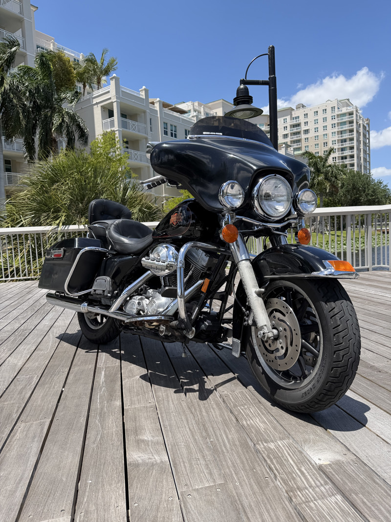The true Harley icon with modern Twin Cam motor but still carbureted. Runs perfect. Fires right up when you need it and just wants to go go go. Super low 29K miles means that the motor has just been broken into. Treat this bike well and you have 100K more to go. This baby might be better prepared to go riding than you are. Radio works but we did not test the cassette player. Small scratches here and there that come with age but nothing serious. See our walk around video for details. The front brake could use a brake flush and bleed. Works fine but has a delayed point of engagement.
