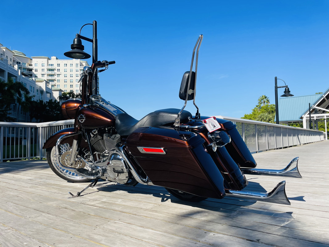 Harley Davidson’s Road King is the smallest of the big touring bikes. The main reason why Police Departments use this bike as their choice of police bikes is the agility yet the comfort and ability to carry heavy equipment to do their work. It is the perfect in between when you do not want to take out the big and bulky Street Glides or Electra Glides, yet if you want to go on a trip add a tour pack easy to the quick-connects and you are riding with all the trunk space you need.