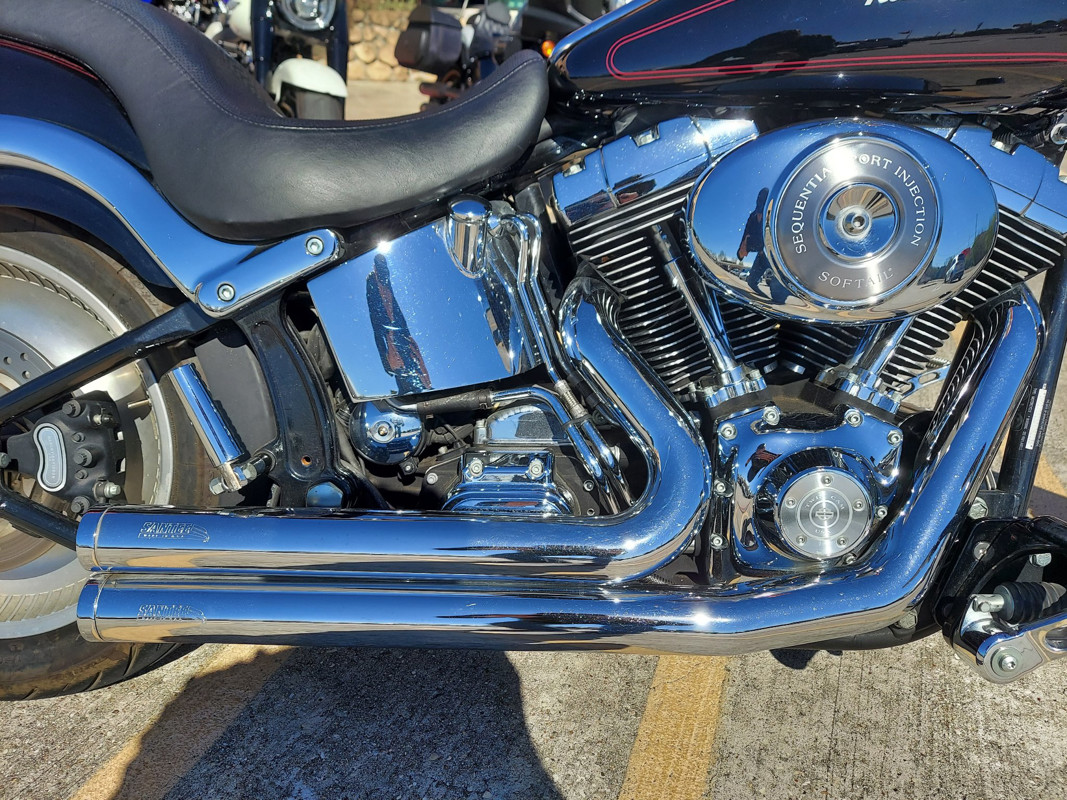 •Cutting edge custom styling committed to Harley-Davidson's heritage.•A smooth running Twin-Cam 88B™ engine set in a classic frame.• Twin counterbalancers. That's where unwanted engine vibrations go to die.•What you don't see is what you get. A buttery smooth ride courtesy of a hidden rear suspension.•You might want to turn, just to try the custom bullet-style signals that are on most Softail® models.