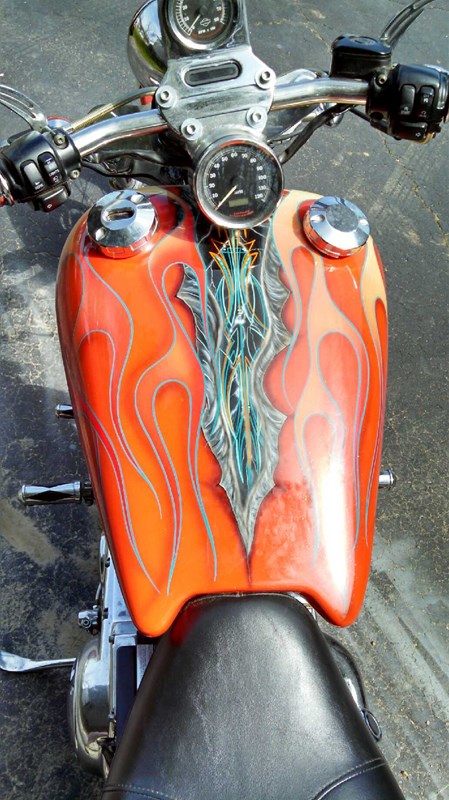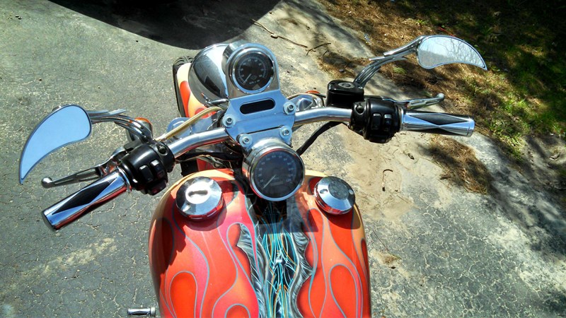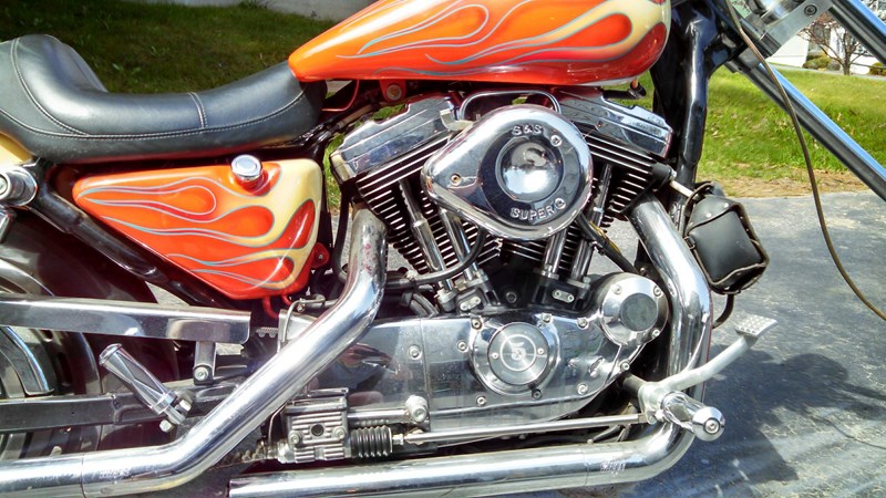 This bike is stunning and everything about it is unique from front to back. Sporting a one of a kind paint job, and chrome everything else top to bottom she is breathtaking. Included with the motorcycle are 2 replacement handlebars and an extra single person seat. She runs like a dream not a single thing needs to be done.