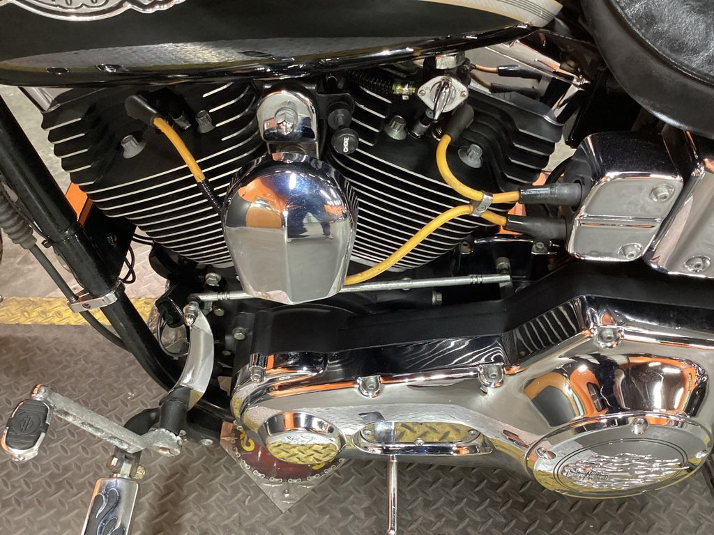 AWESOME MOTOR! ONLY 11,541 MILES, MOTOR WORK WITH SCREAMIN EAGLE HEADS AND MANUAL COMPRESSION RELEASES, THUNDER HEADER 2 INTO 1 EXHAUST, HIGH FLOW INTAKE, HD TACHOMETER, UPGRADED GRIPS, PEGS, AND FOOT CONTROLS, HD UPGRADED DERBY COVER AND TIMING COVER, UPGRADED BEZELS, BACKREST WITH INTEGRATED LED TAILLIGHT, CHROME PULLEY COVER, FRONT FENDER MUD FLAP TRIM, AND NEWER TIRES! CLEAN LOW MILEAGE DYNA CRUISER! 100TH ANNIVERSARY MODEL! SWEET SOUND!
