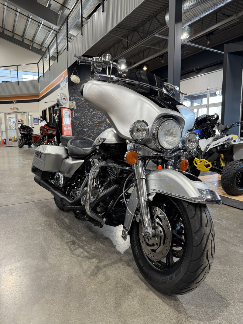 100th Anniversary FLHTC/FLHTCI Electra Glide® Classic Say the words “touring bike,” and chances are the Electra Glide® Classic is the machine that comes to mind. With classic looks and a go-all-day attitude, it's become the quintessential long-hauler. It starts with a powerful EFI or carbureted Twin Cam 88® powertrain with refined chassis. There are hard bags, Tour Pak® luggage box with 100TH emblem and sound that complements the rumble from the pipes. 40-watts-per-channel from low-distortion speakers. This year, it's even better, with a new CD player standard. There's full instrumentation behind the unique batwing fairing. And an Anniversary look that could only be described as magnificent. Ask yourself, what, or rather where, do you have in mind now? * MSRP may not reflect vehicle shown. See Additional Features for specific color/option pricing.
