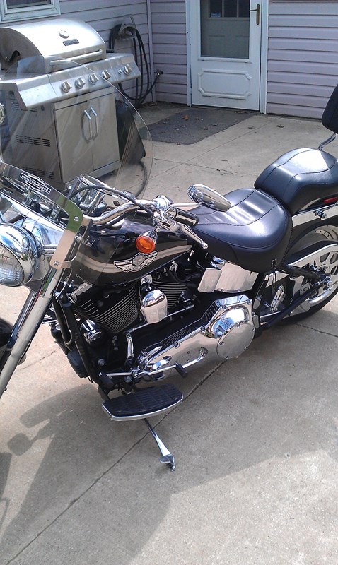 excellent shape ... extra Harley chrome.. removable front windshield... back rest.... cover... helmet included.... new tires...great value.... and should hold it since anniversary addition.