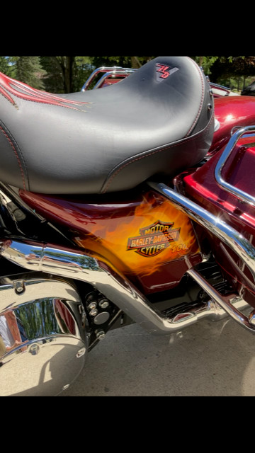One of kind motorcycle 2003 100th anniversary Harley-Davidson. twin cams 88 fuel injected with 5 speed transmission, extremely rare only 206 made, $10,000 worth of chrome and accessories to many to list, stage 1 kit for engine, Kerker custom mufflers, chrome stock wheels, detachable windshield w/bag, tour-pak w/detachable rack, passenger backrest, tour-pak luggage rack, custom flame rider seat, custom airbrushing on both side covers, large cycle . cover. All original parts go with bike. Bike can be put back to stock.