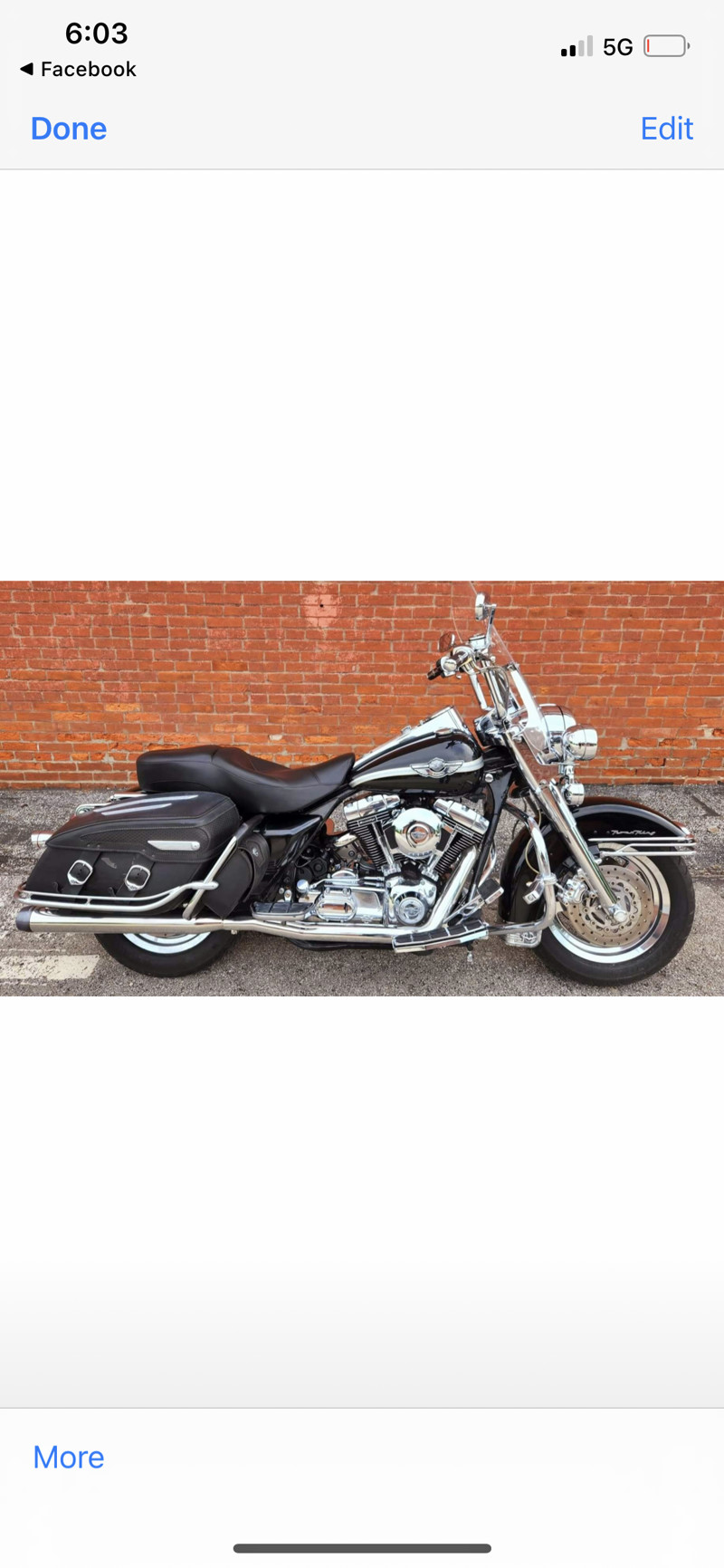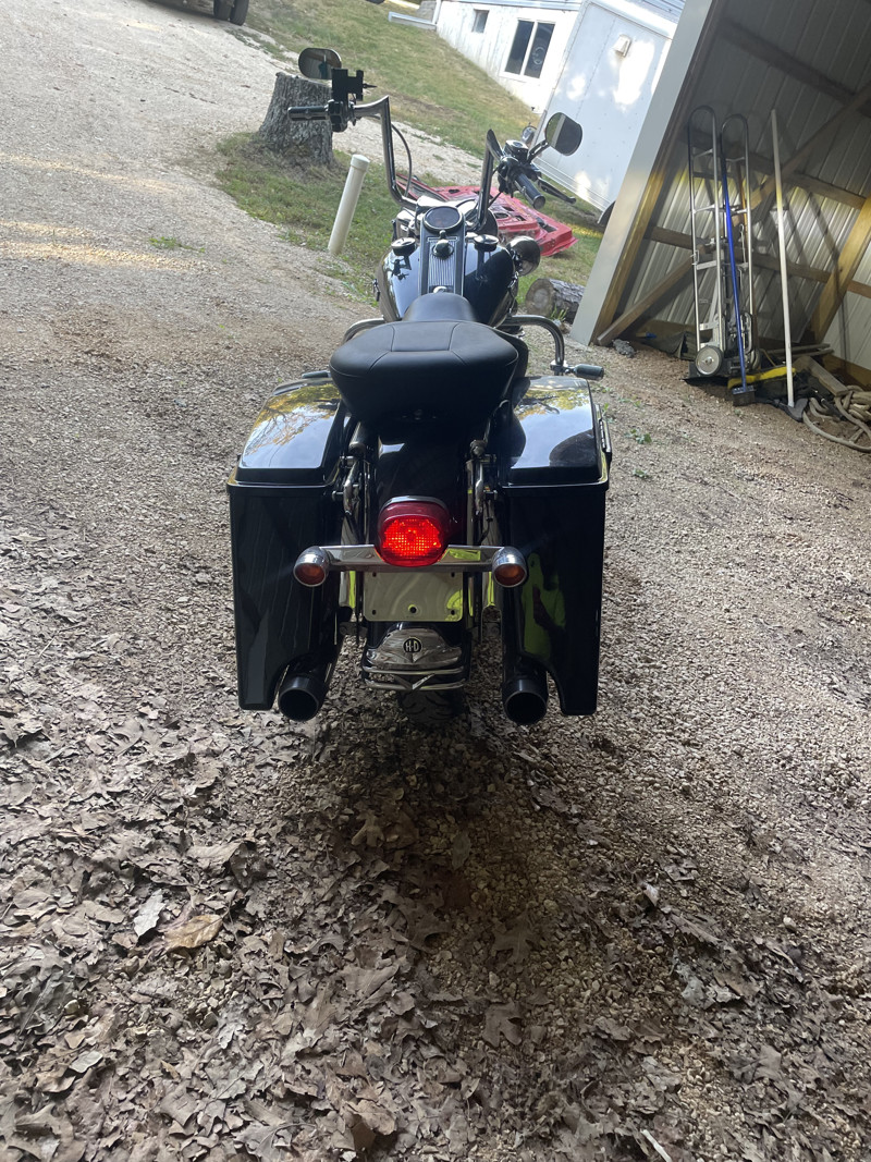 2003 road king 100th anniversary. Bike does have high compression heads on it and other motor work done but not sure on everything. Has 5inch extended hard bags on it. Have all the factory bags to go with it.