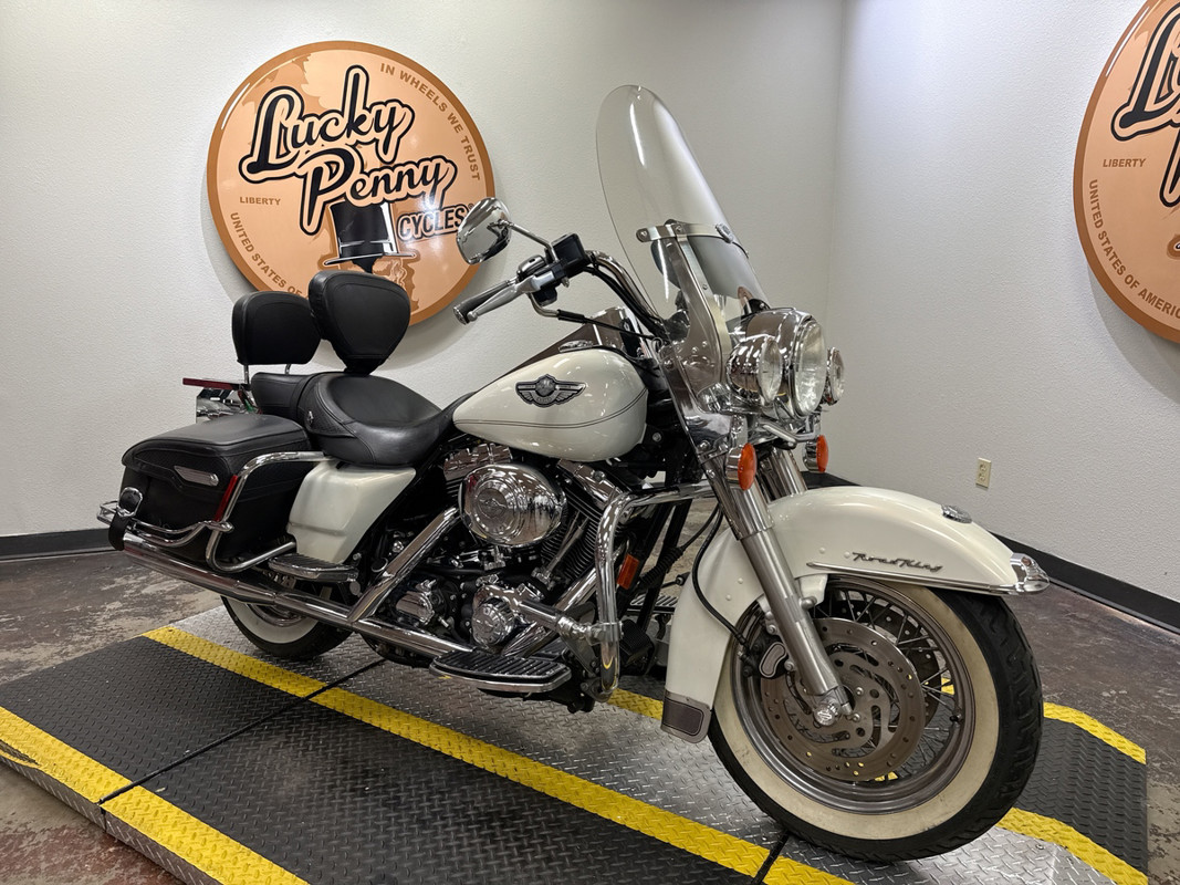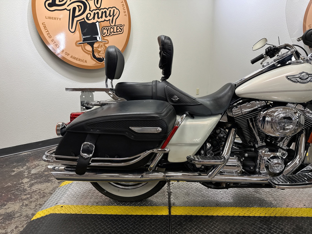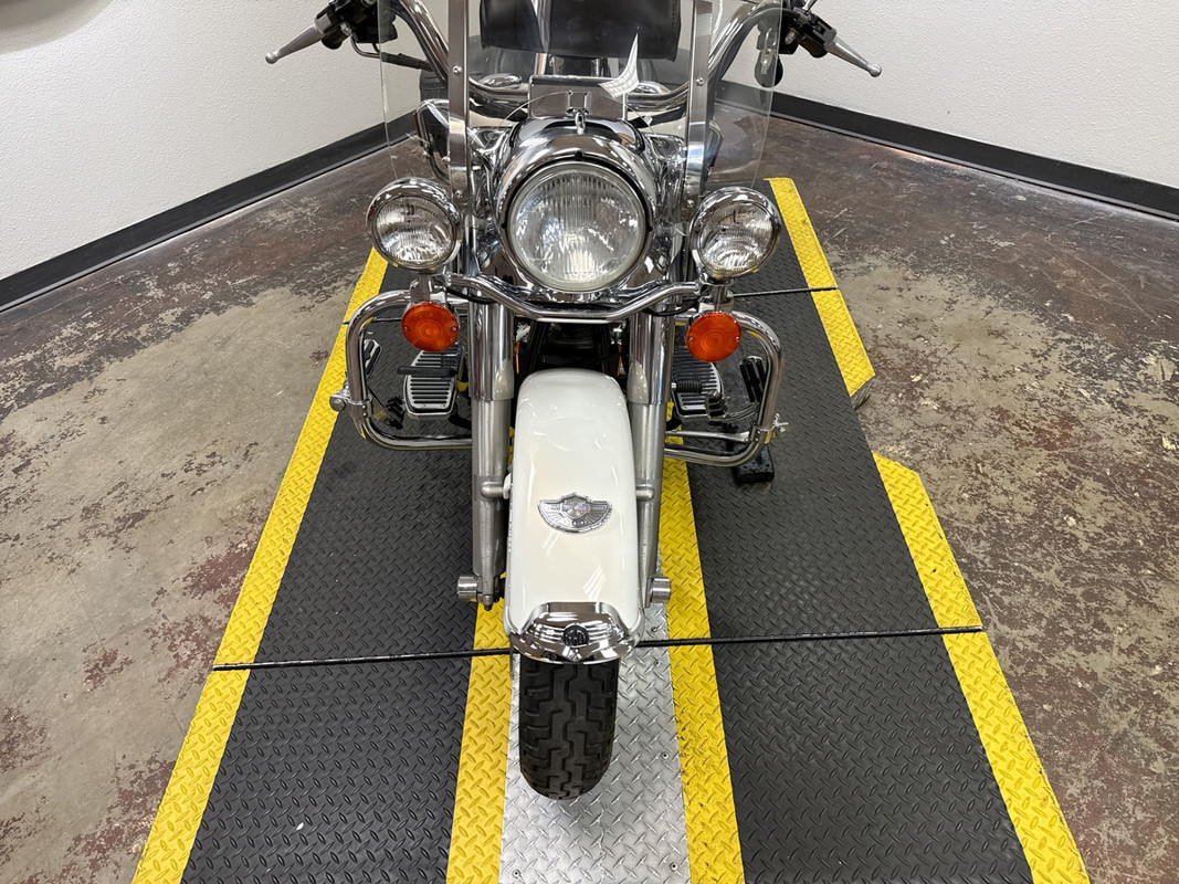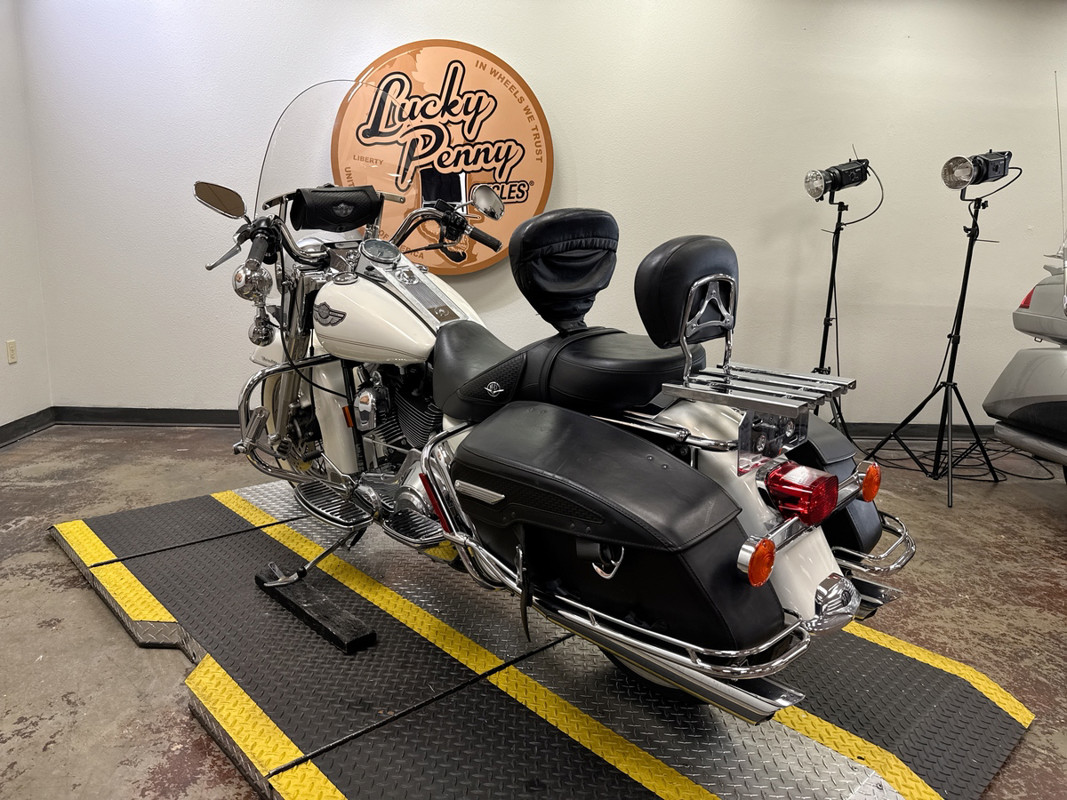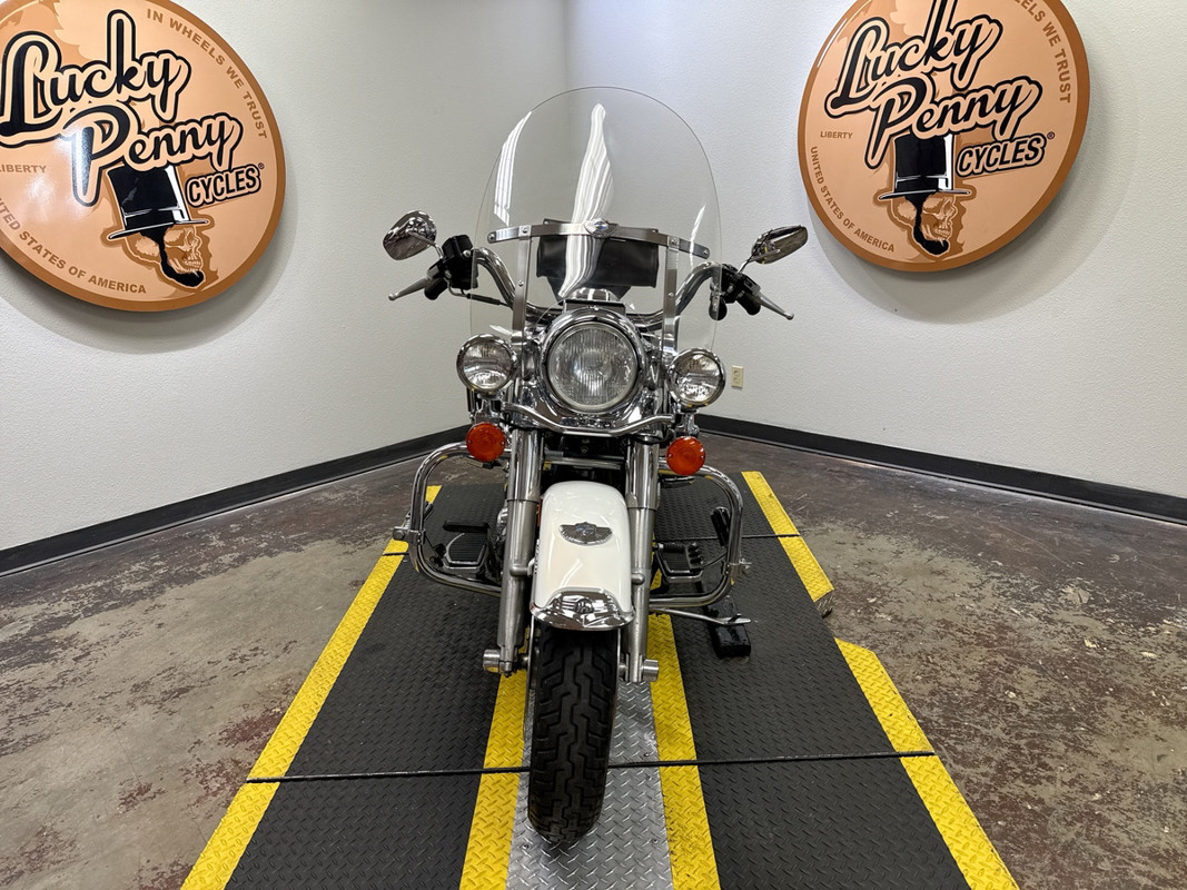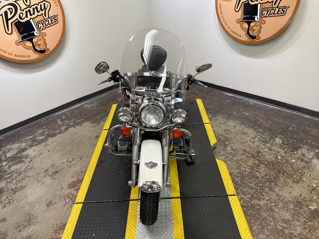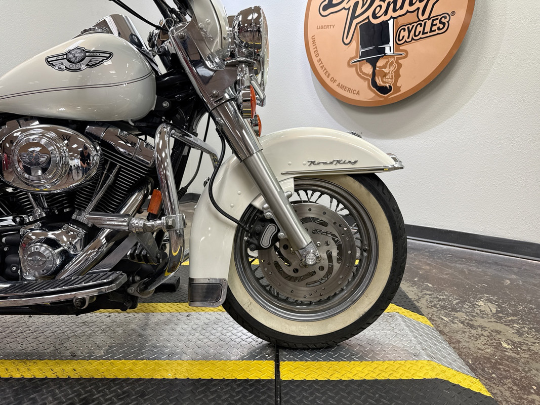 This 2003 Harley-Davidson Road King Classic offers a comfortable and stylish ride in the timeless White Pearl with stripe. This Road King Classic is equipped with several desirable features for both rider and passenger. With 15,310 miles, this well-maintained Road King Classic is available for $8,995.