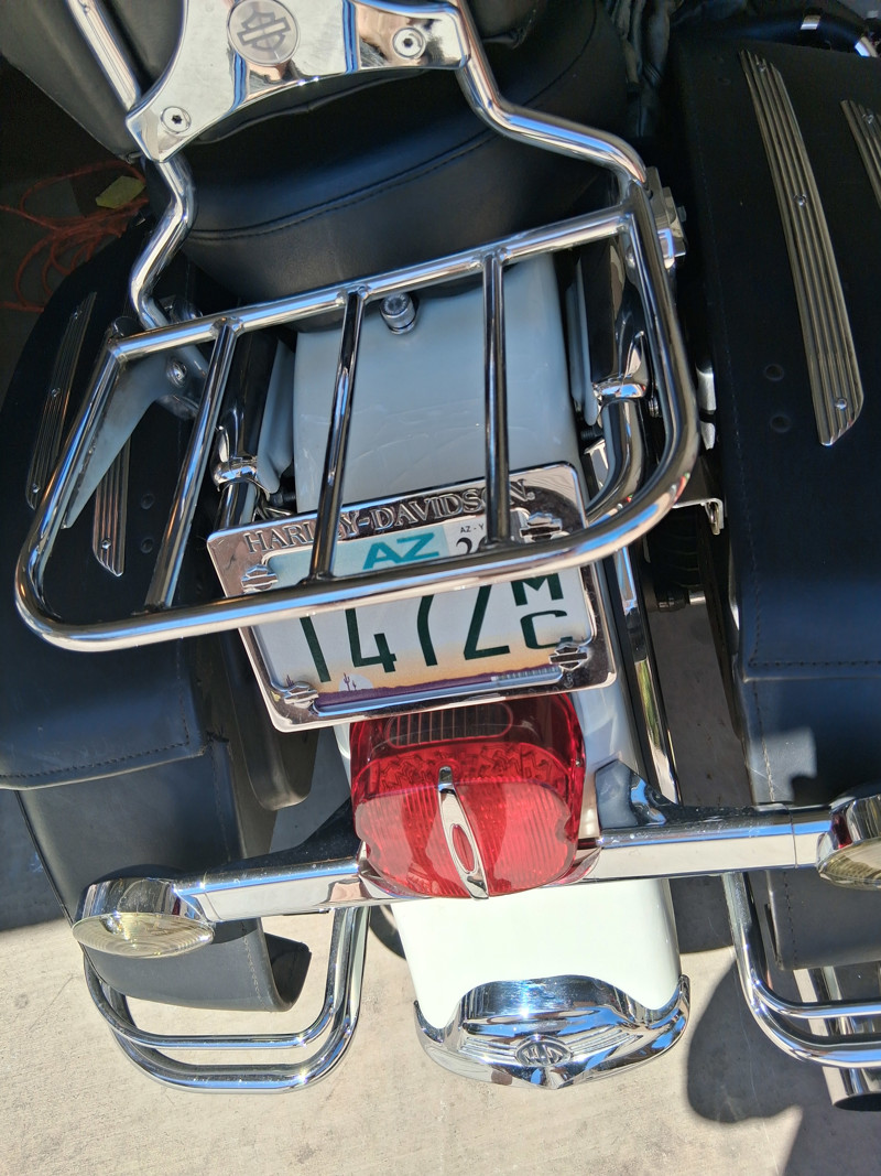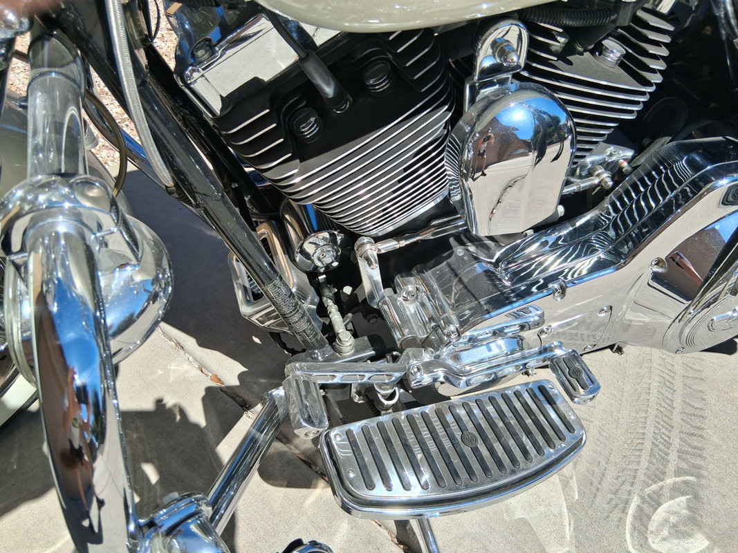 Pearl white with lots of chrome. Low mileage only 30,000 with lots of extras, rebuilt engine to increase size and any factory resets. I love this bike and added many extras but my disability no longer allows me to ride. When parked I turn on the blue lights to showcase the engine at night