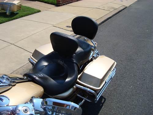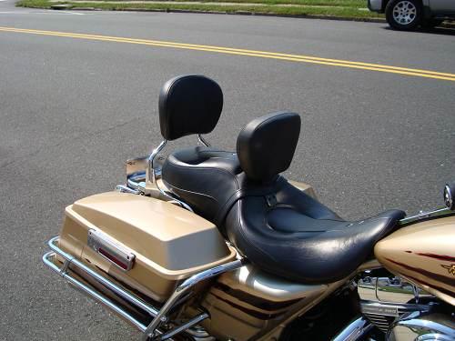 - Custom Leather Seat with Chrome Buttons with Detachable Passenger Back Rest and Fully-Adjustable Rider Backrest