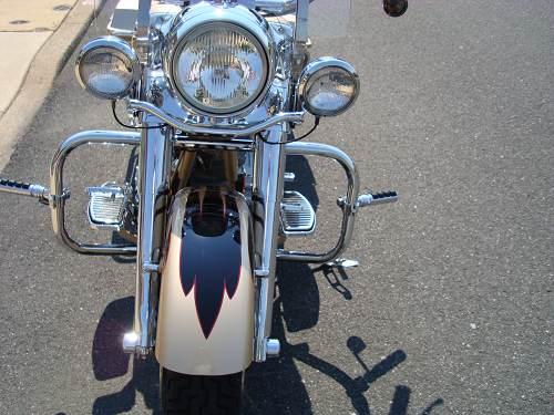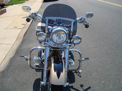 Also, added accessories are H-D passing lamps, air horns (much louder than stock), Kuryakyn ISO-Stirrups and ISO-Pegs, H-D saddle bag guard rails, H-D full size Clear Lexan wind deflector, H-D King Tour pak, Samson Exhaust, and H-D race tuner installed by Andy Simon (Simon’s Performance) who is the 2006 AHDRA Street-Pro National Champion. Additionally, recently installed OEM front and rear tires. This bike goes from touring to street in a few minutes with detachable accessories. You could purchase something for less, but end up paying more to add on all the chrome that this beauty has. Approx. mileage 32k. Garage kept, original owner. Sold as is. No warranty implied, written, or otherwise.