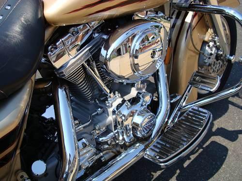 The standard EFI system was reprogrammed to match the increased displacement while retaining the crisp throttle response of the stock Twin Cam 88 EFI engine. The drivetrain was reinforced with a high-performance hydraulically actuated clutch, custom oil cooler and a high-strength final drive belt. The result was a motor that pumped out 100 lb.-ft. of arm-stretching V-Twin torque at 3500 rpm, a 20 percent increase over the stock Twin Cam 88 engine. The engine was manufactured in silver with chrome trim.