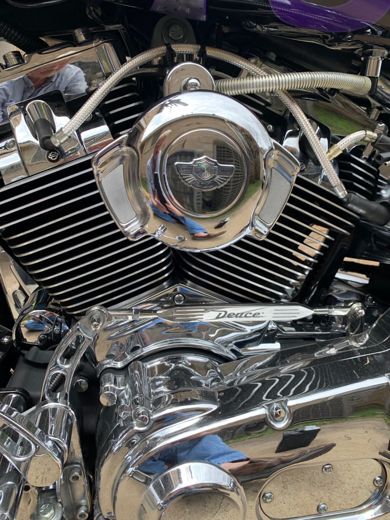 This is a beautiful 100th Anniversary HD Softail Deuce custom. You would have to look closely to find the remnants of the original Deuce (ok the tank console or the Anniversary logo on the block will give it away)