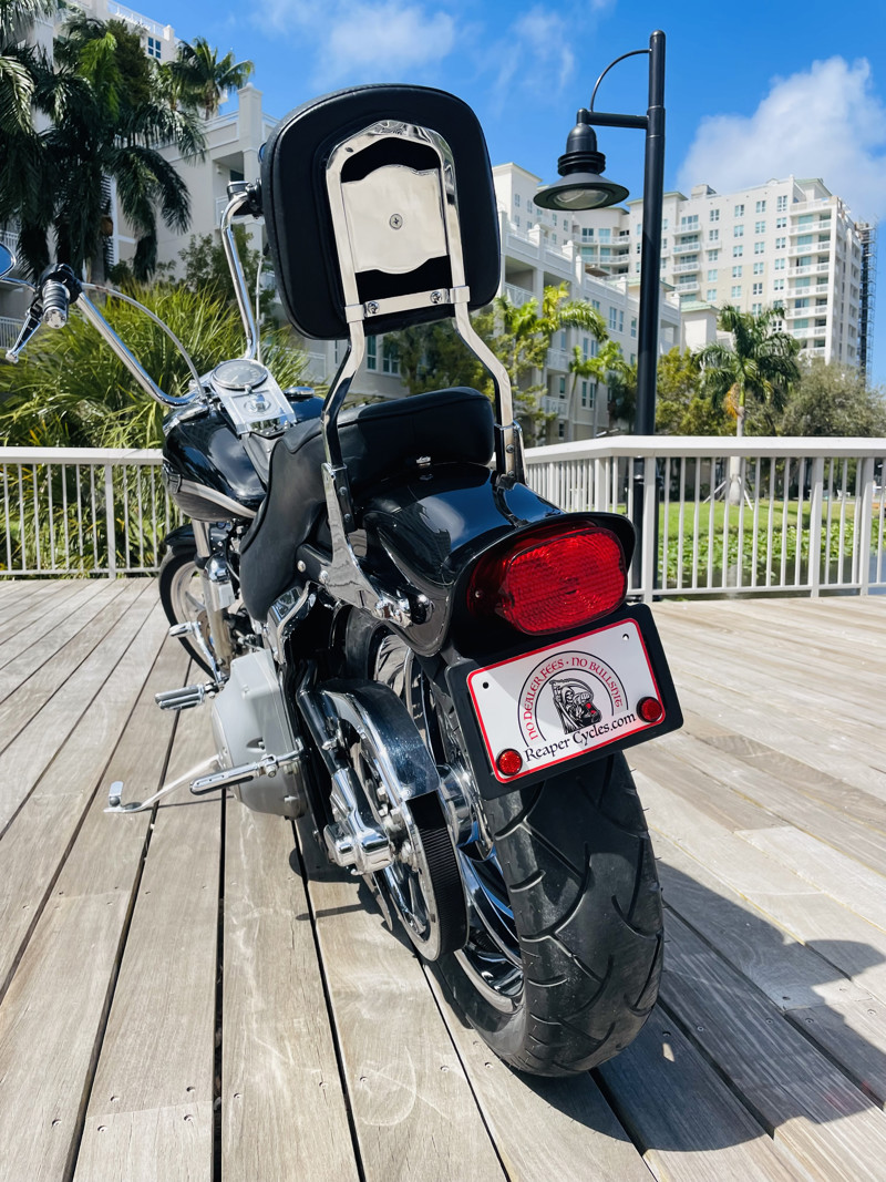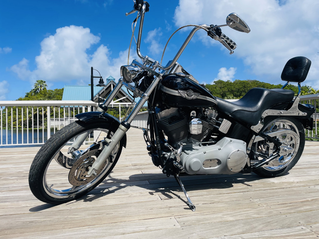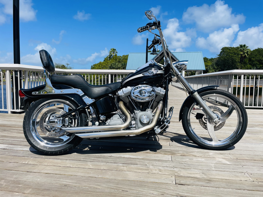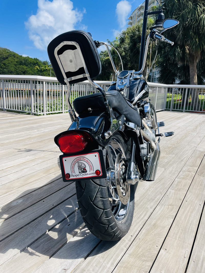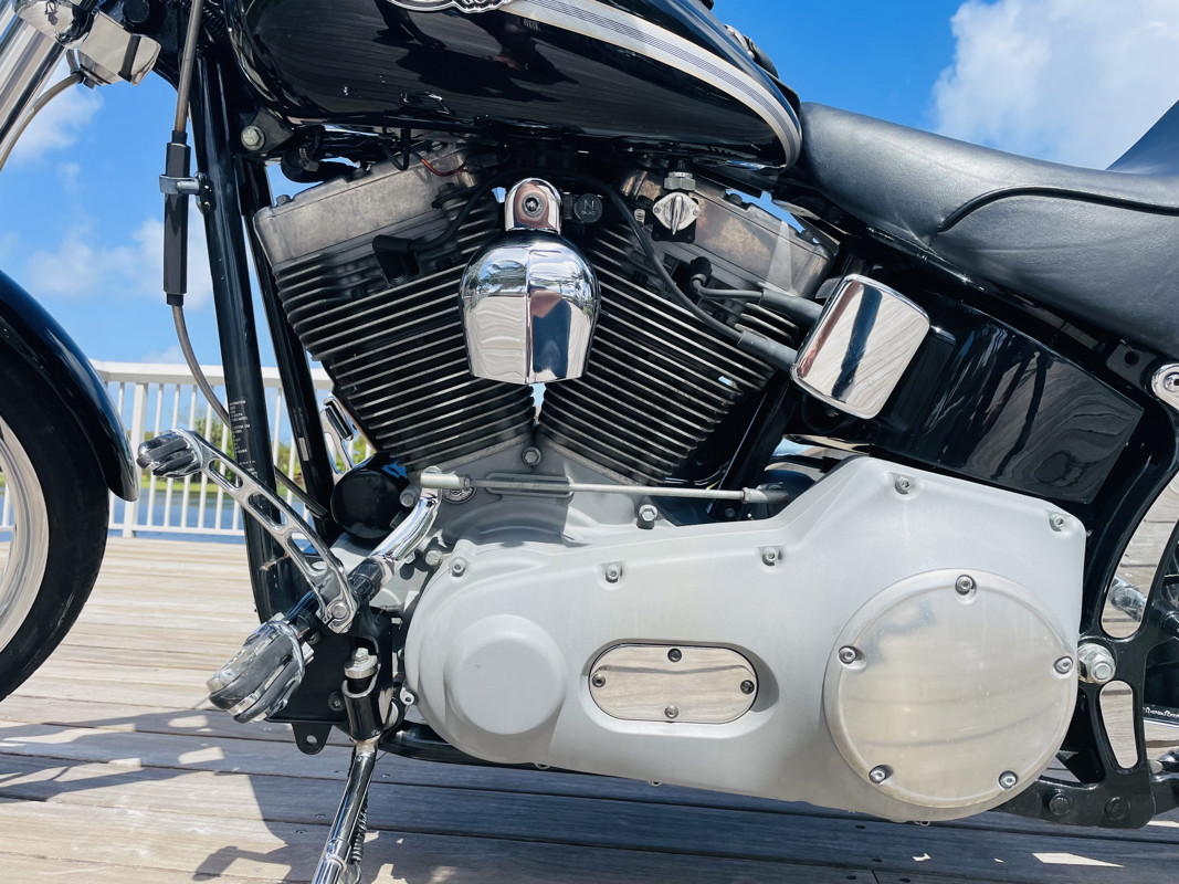 This is not just a near prefect example of a Softail Standard but it also is the uniquely batched and collector quality low mile “100-Year Anniversary” Edition. This bike is nearly perfect. Excellent shape with the carbureted 88ci Twin Cam motor, rubber mounted and a huge power improvement to the previous motor. This bike has received upgraded wheels but otherwise is typically stock. Paint shines like it did 23 years ago. A true testament to how awesome the old Harleys really were. Rare to find exceptional carbureted Harleys these days. Here is one. Big apes already installed!